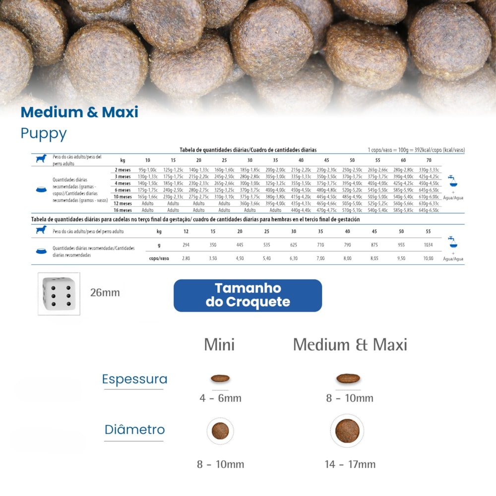 Tipo de produto: Alimento completo e balanceado para cães filhotes de raças médias e grandes e para cadelas no terço final da gestação e em lactação