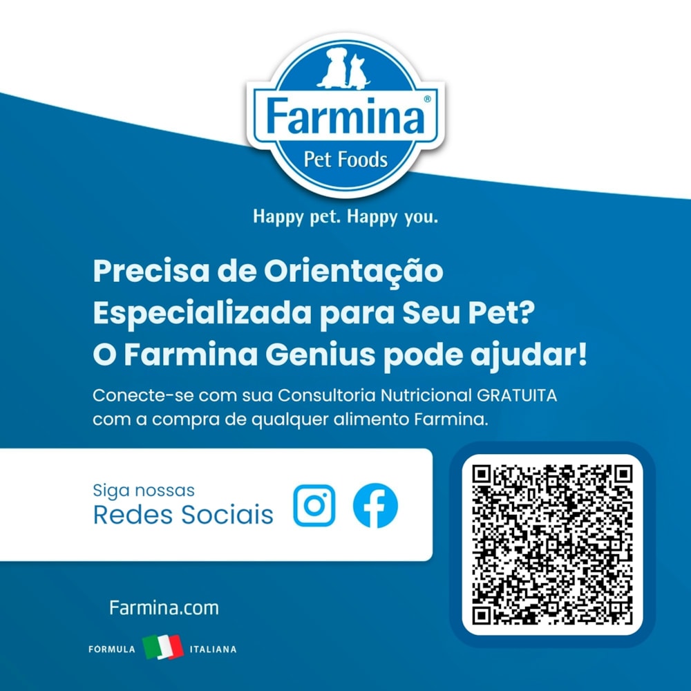 Suporte Nutricional Personalizado: Acesse um plano nutricional gratuito e receba apoio especializado com a Consultoria Nutricional Farmina, online ou através do aplicativo Farmina Genius.