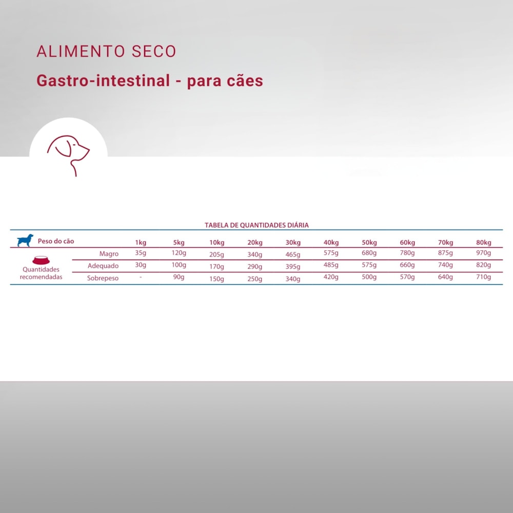 Tipo de produto: Alimento coadjuvante seco indicado para cães com dificuldades digestórias e de absorção intestinal e com insuficiência pancreática exócrina. Também pode ser indicado na recuperação de cães que foram submetidos à intervenção cirúrgica do trato digestivo.