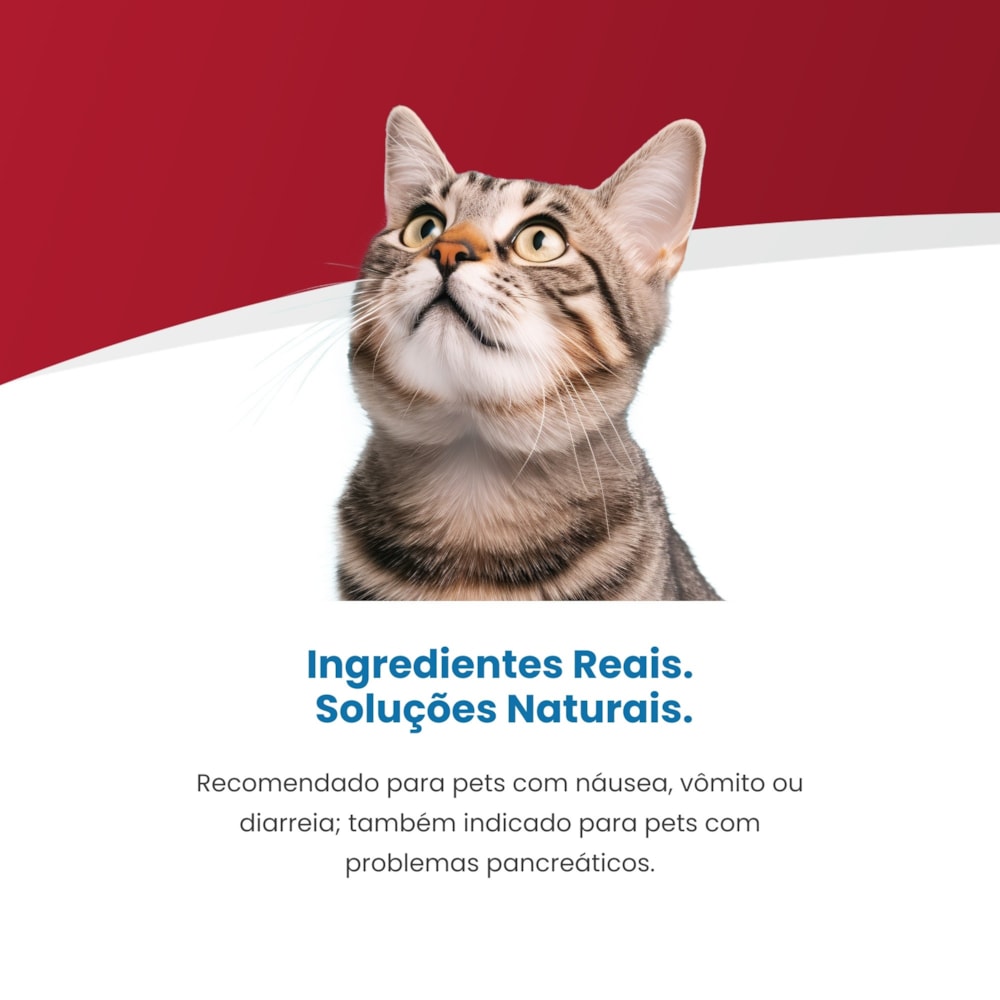 Tipo de produto: Alimento coadjuvante seco indicado para gatos com dificuldades digestórias e de absorção intestinal, ou recuperação nutricional de gatos debilitados.