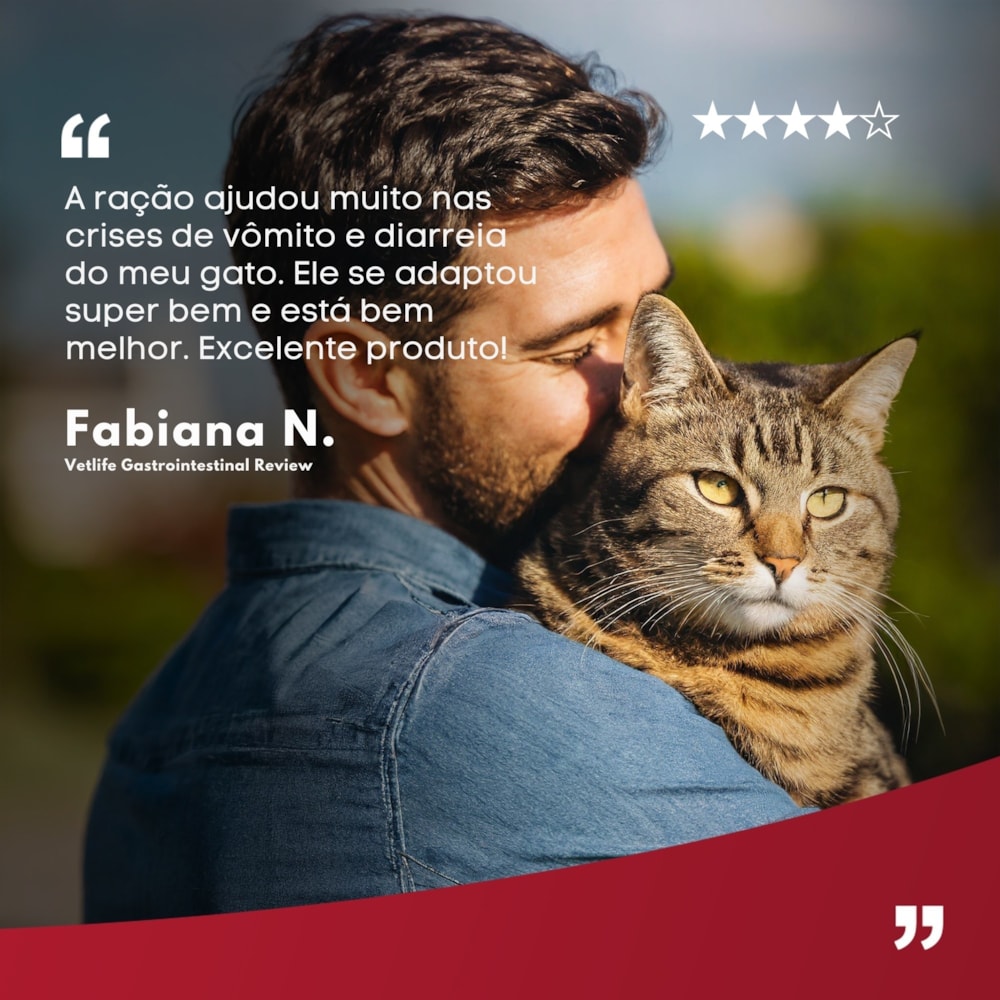 Ofereça ao seu gato a nutrição que ele precisa com a linha Vet Life Gastro-intestinal, formulada para auxiliar gatos com dificuldades digestórias e recuperação nutricional.