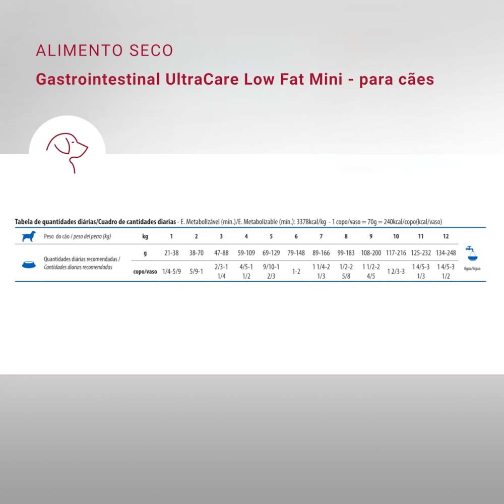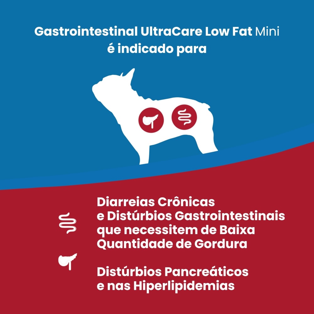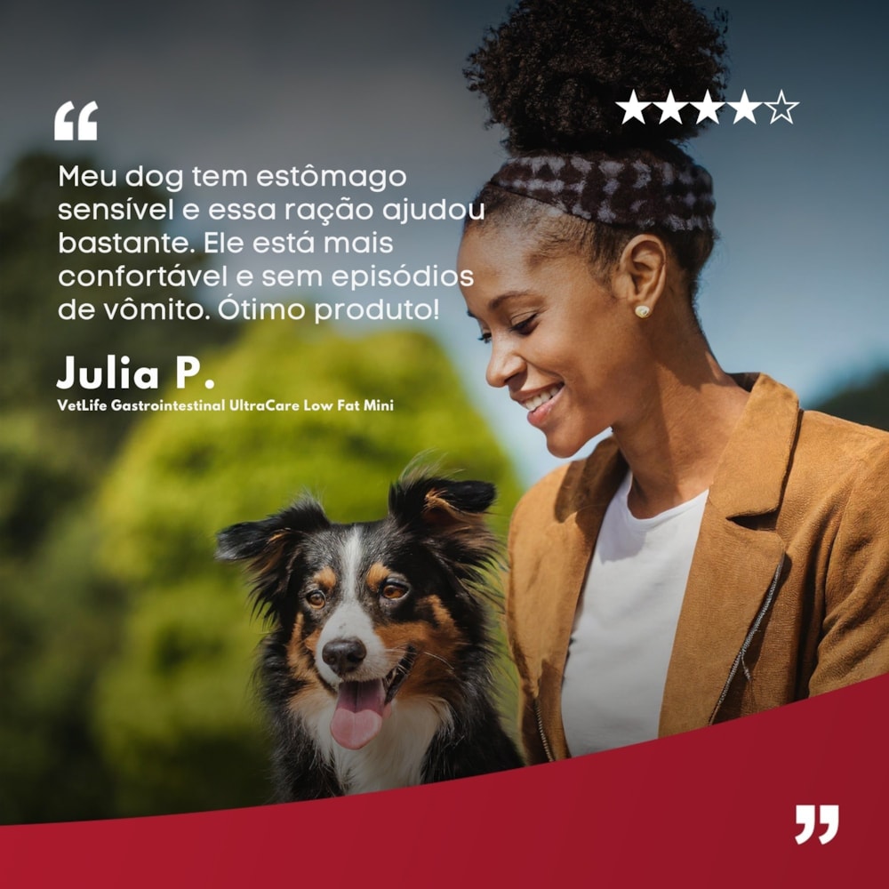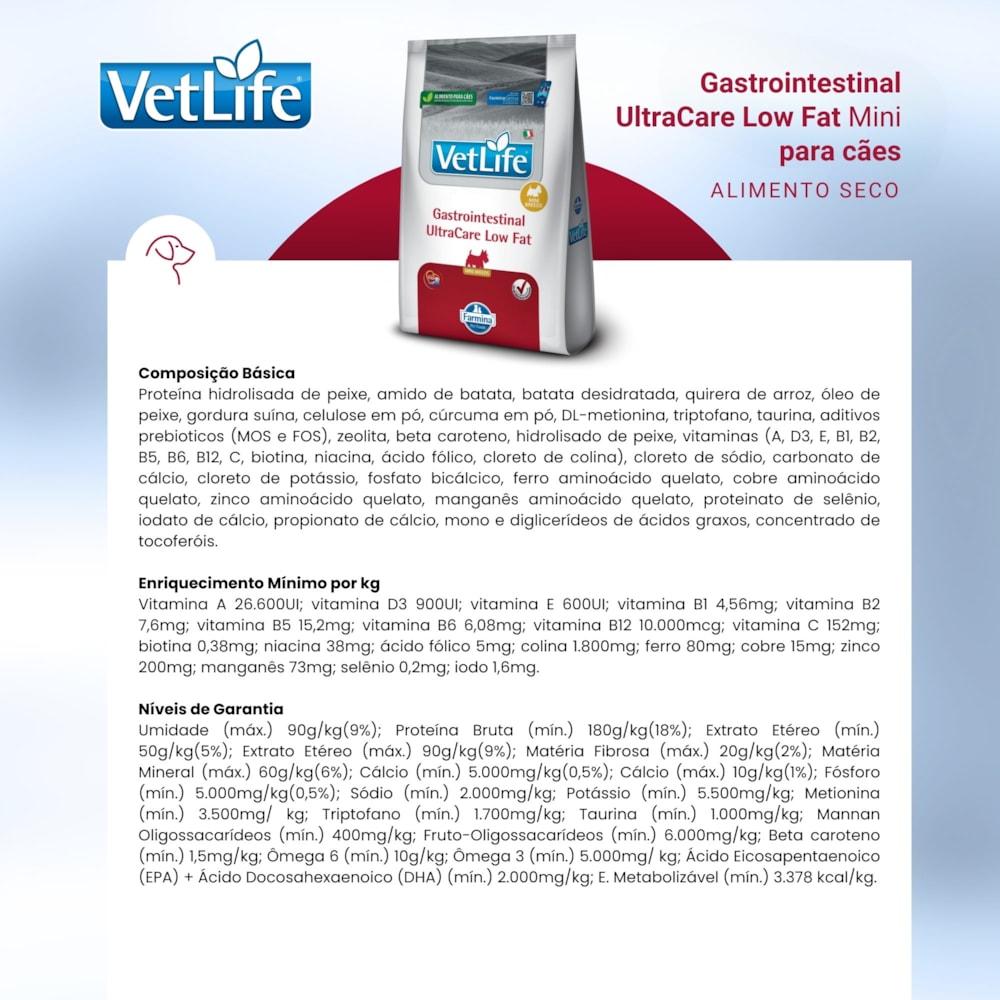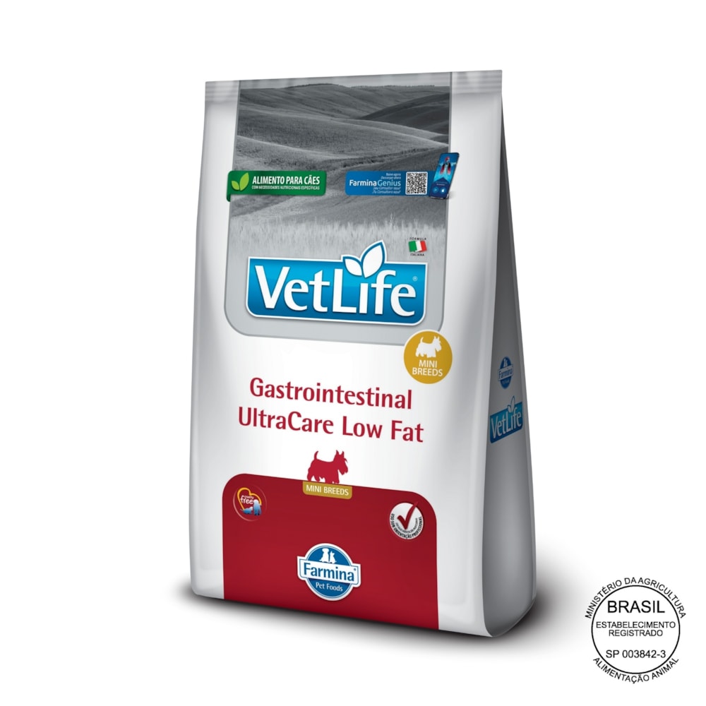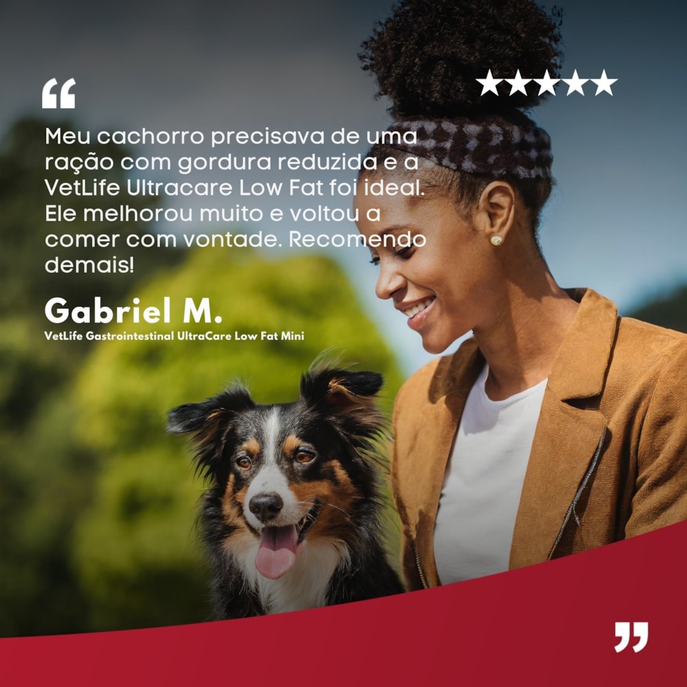 Experimente a diferença na saúde do seu pet com a Vet Life Gastrointestinal UltraCare Low Fat — 100% de Garantia de Satisfação. Uso sob orientação do Médico-Veterinário.