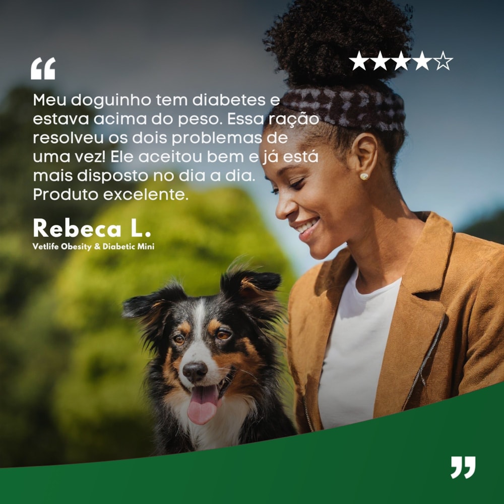 Ofereça ao seu cão a nutrição que ele precisa com a linha Vet Life Obesity & Diabetic, formulada para ajudar na redução do excesso de peso corporal e no controle da diabetes.