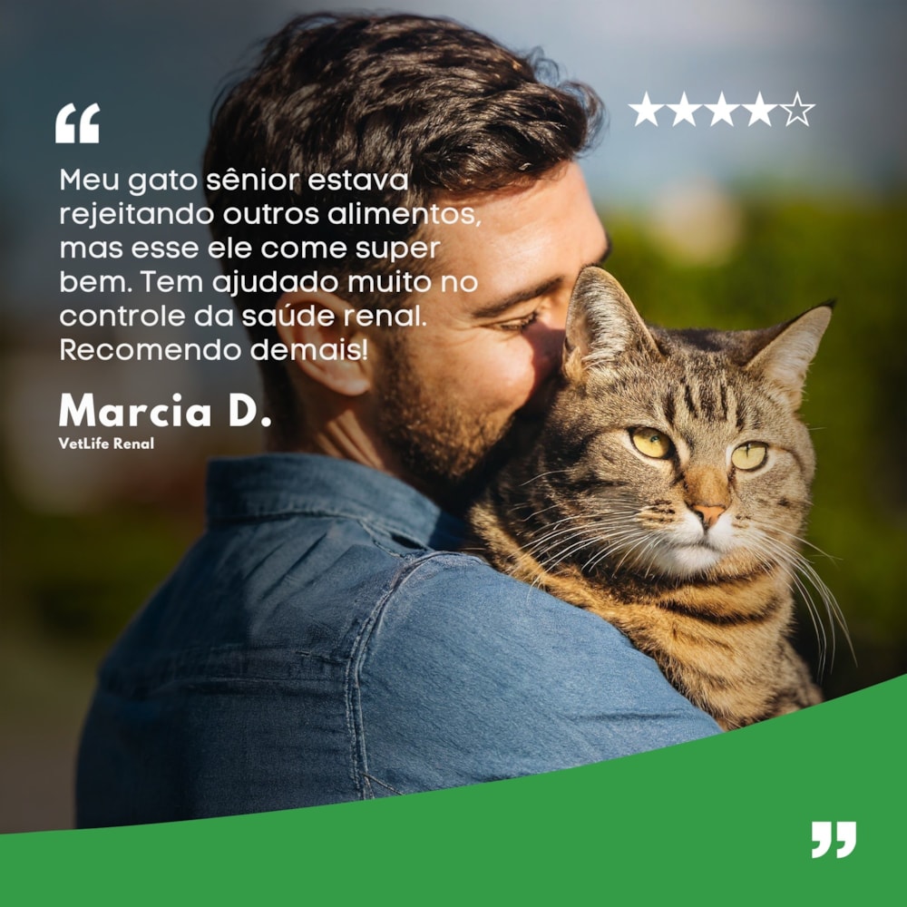 Ofereça ao seu gato a nutrição que ele precisa com a linha Vet Life Renal, formulada para apoiar a função renal em casos de doença renal crônica ou aguda, e em situações de insuficiência cardíaca congestiva.