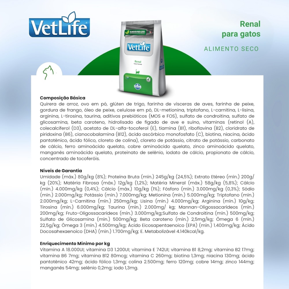 A fórmula Vet Life Renal foi desenvolvida especialmente para o suporte à função renal em casos de insuficiência crônica ou aguda. Ela contém níveis reduzidos de proteínas e fósforo para minimizar a carga sobre os rins, além de proteínas hidrolisadas, que são altamente digestíveis e proporcionam energia sem sobrecarregar o organismo. O uso de óleo de peixe oferece ácidos graxos essenciais como ômega-3, que ajudam a reduzir a inflamação e protegem a função renal.