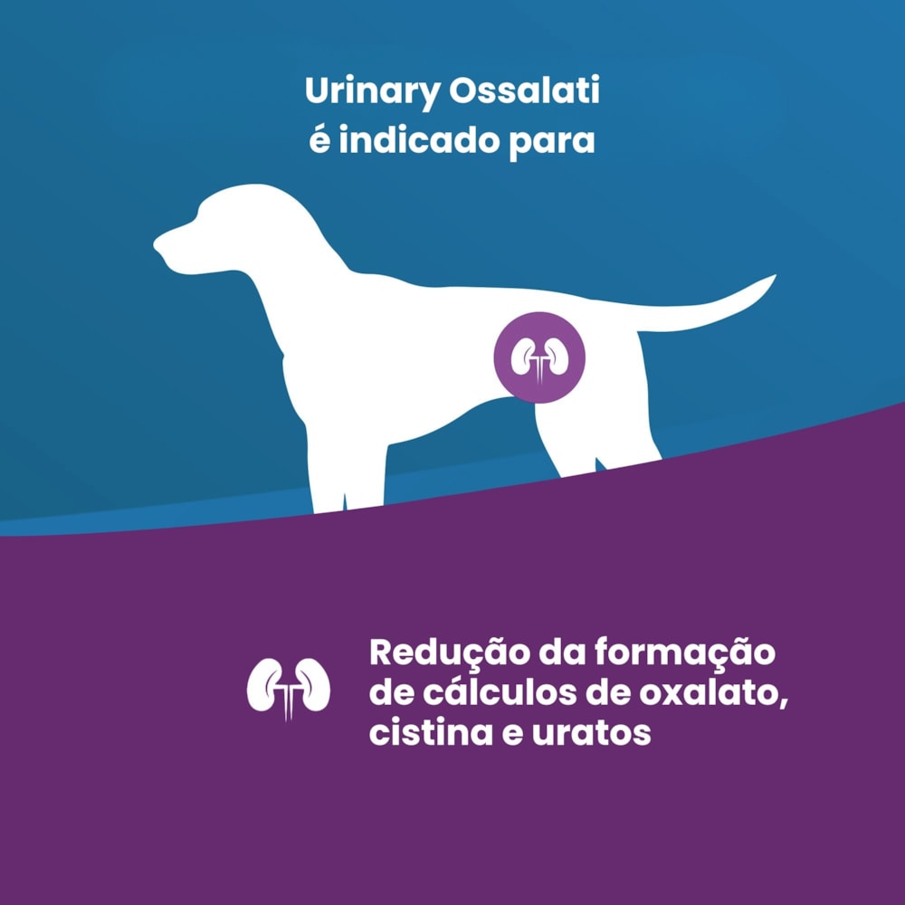 Tipo de produto: Alimento coadjuvante para cães com cálculos de oxalatos, cistina e uratos. Consulte seu médico veterinário.