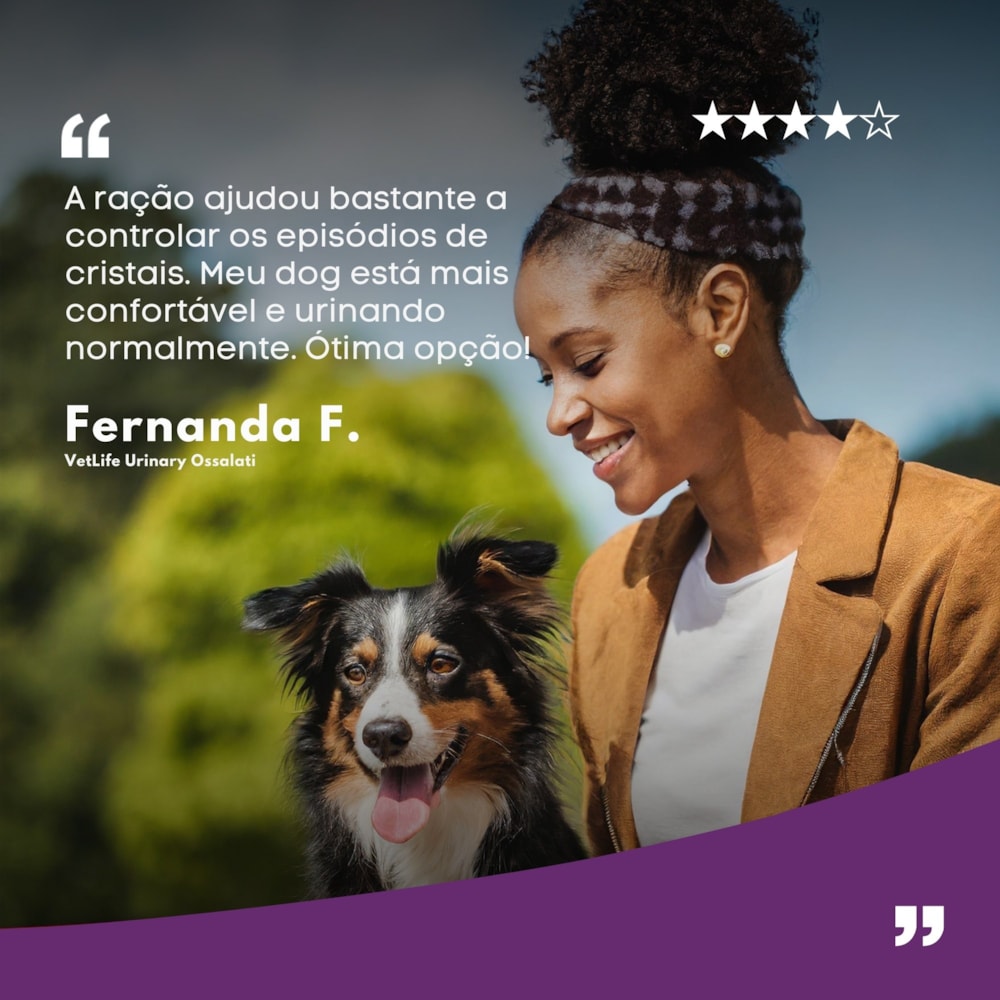 Ofereça ao seu cão a nutrição que ele precisa com a linha Vet Life Urinary Ossalati, formulada para auxiliar cães com cálculos de oxalato, cistina e uratos, ou com predisposição para formação.