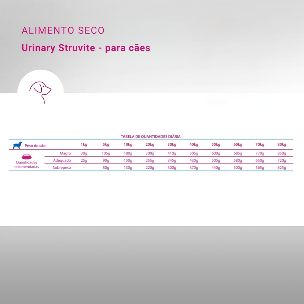 Tipo de produto: Alimento coadjuvante para cães com cálculos de estruvita. Consulte seu médico veterinário.