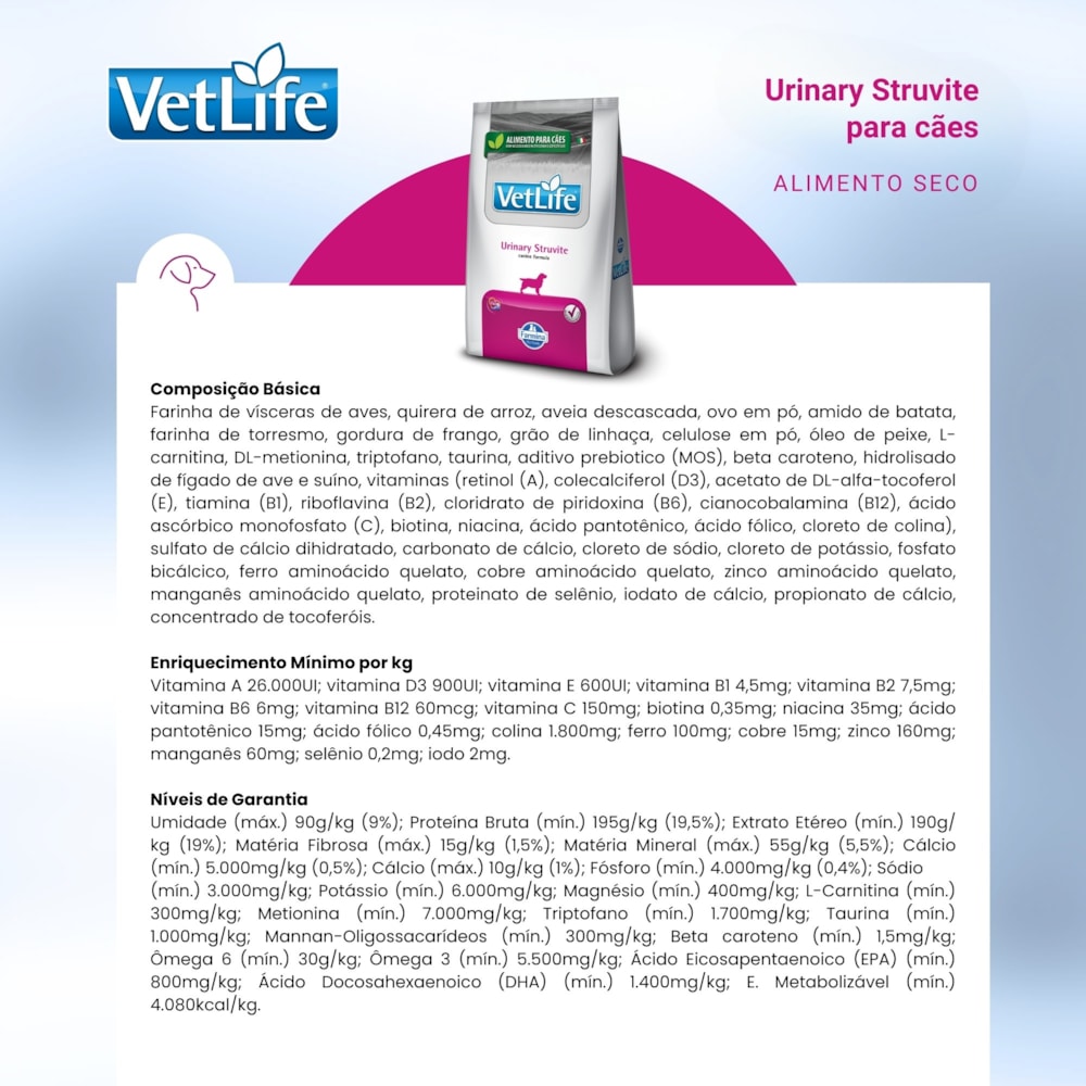Proporcione ao seu cão a nutrição que ele precisa com a linha Vet Life Urinary Struvite, formulada para auxiliar na recuperação de cães com urólitos de estruvita.