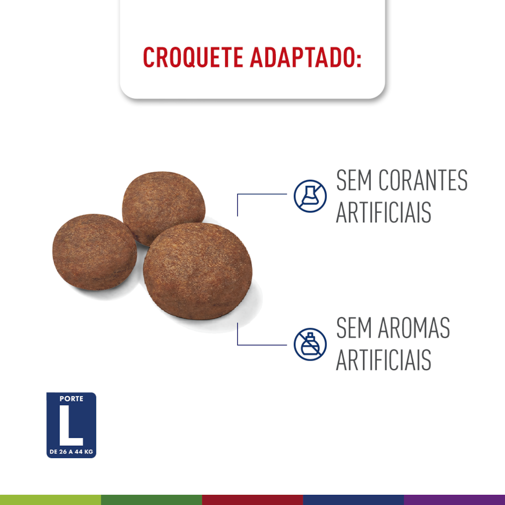 Energia sob medida para acompanhar o ritmo de crescimento dos cães de porte grande até os 15 meses.