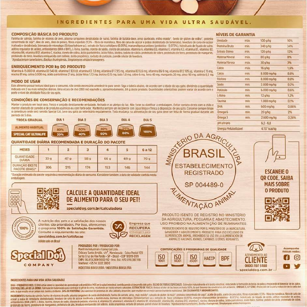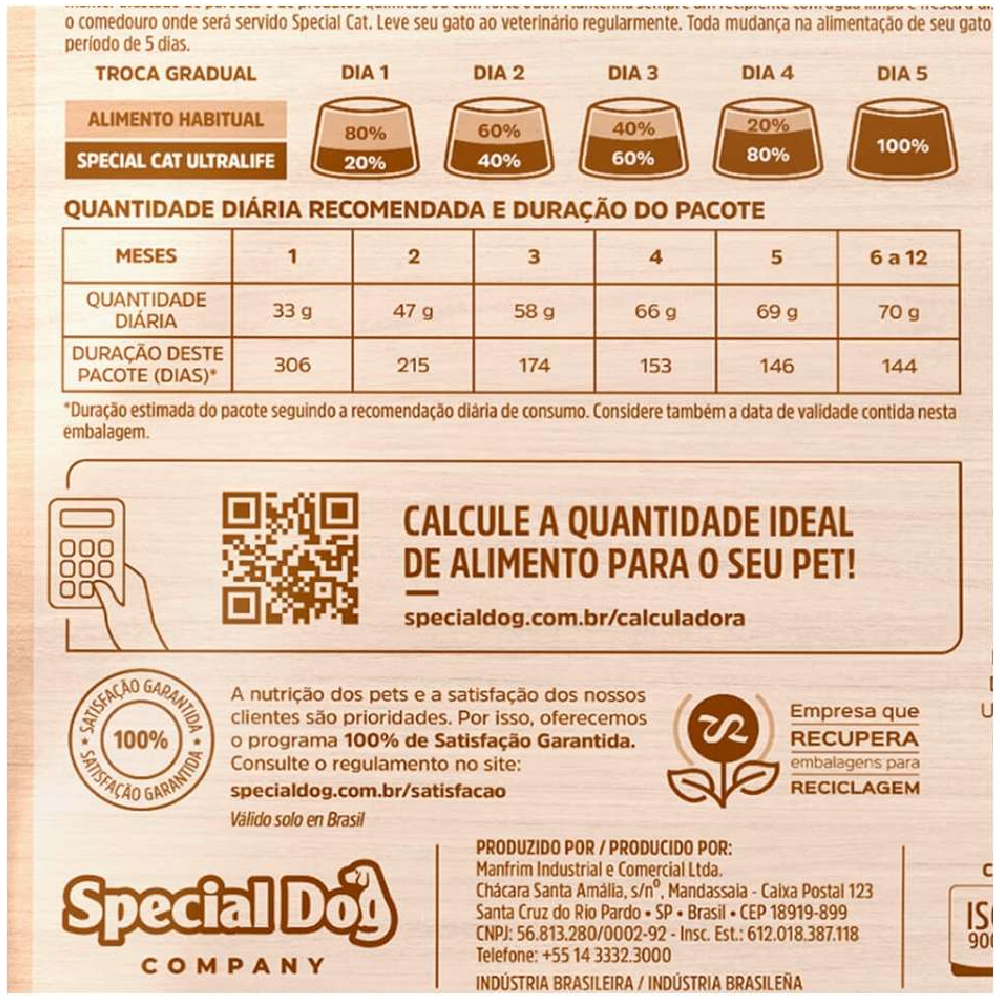 Lembre-se: Consulte o veterinário para saber a quantidade ideal de Special Cat Ultralife Filhotes para oferecer ao seu gatinho, de acordo com a idade, peso e nível de atividade dele.