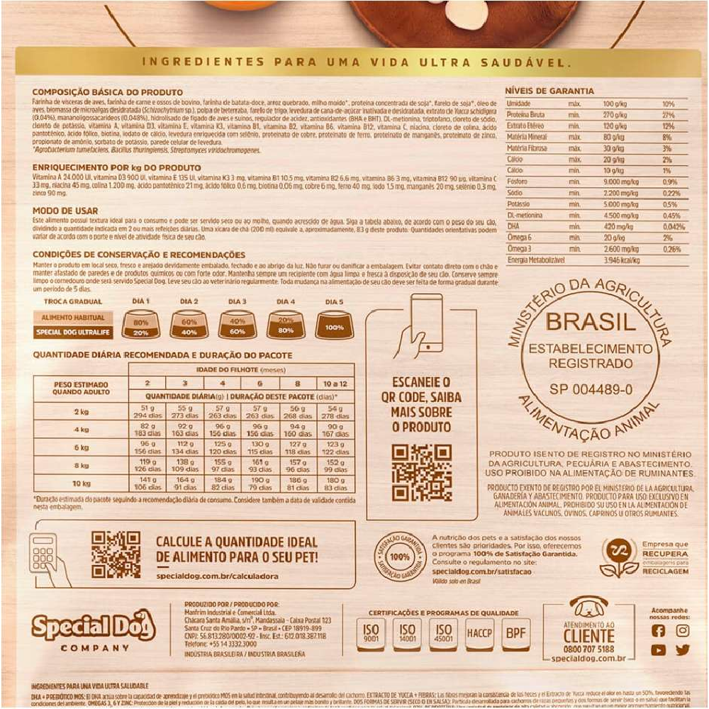 Com a Ração Special Dog Junior Premium Raças Pequenas 15KG, você garante ao seu filhote um crescimento saudável, desenvolvimento completo e um futuro cheio de energia e vitalidade!