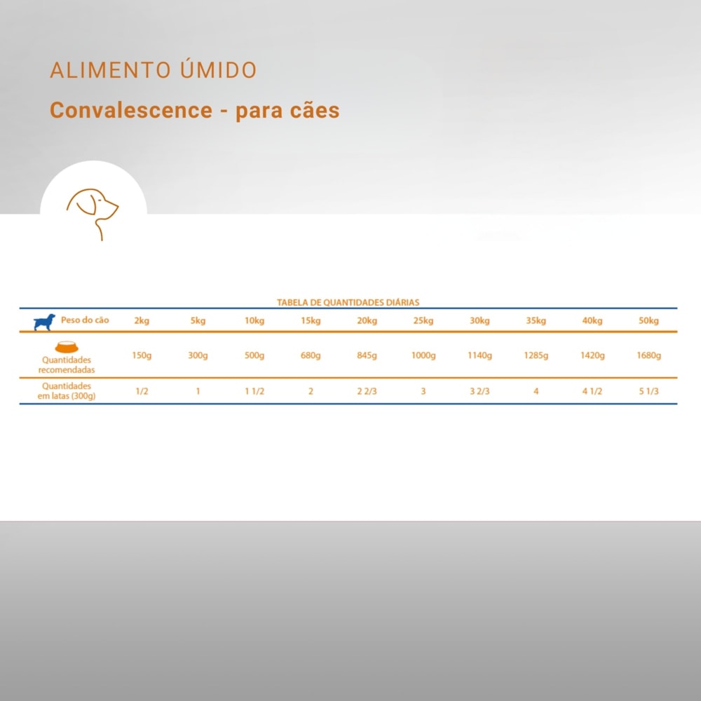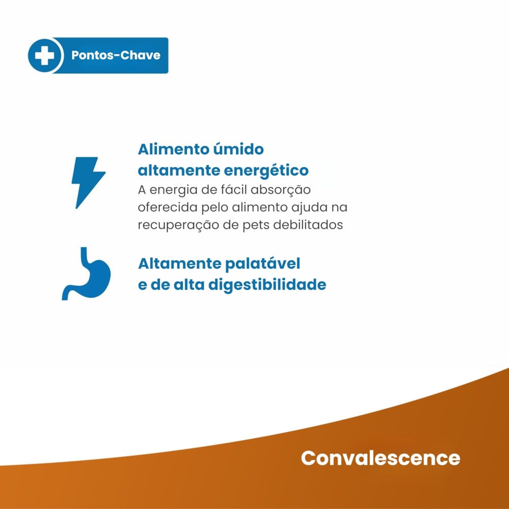 Tipo de produto: Alimento coadjuvante úmido indicado para cães convalescentes ou em recuperação nutricional
