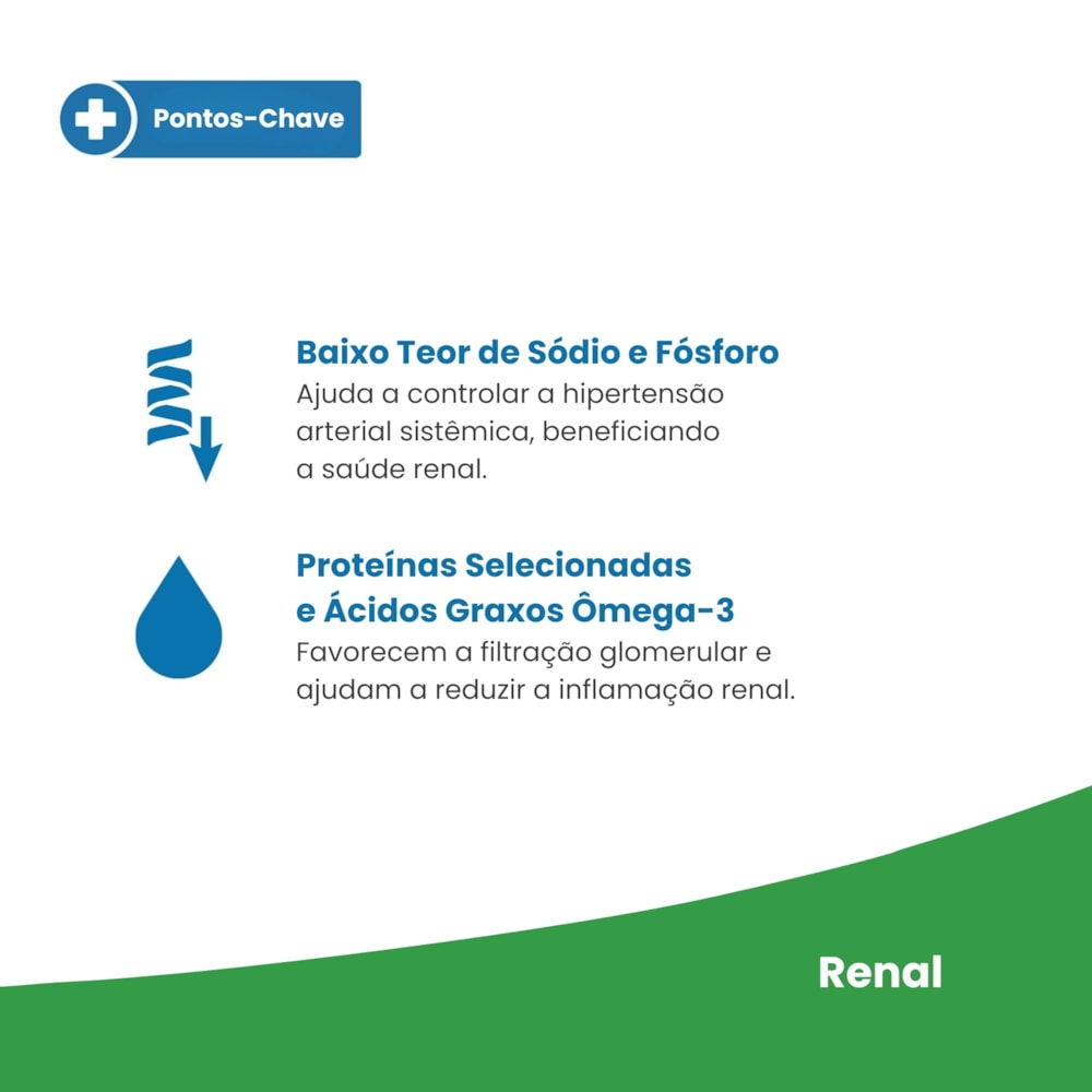 Baixo Teor de Sódio e Fósforo: Conteúdos reduzidos de sódio e fósforo ajudam a minimizar as complicações associadas à insuficiência renal.
