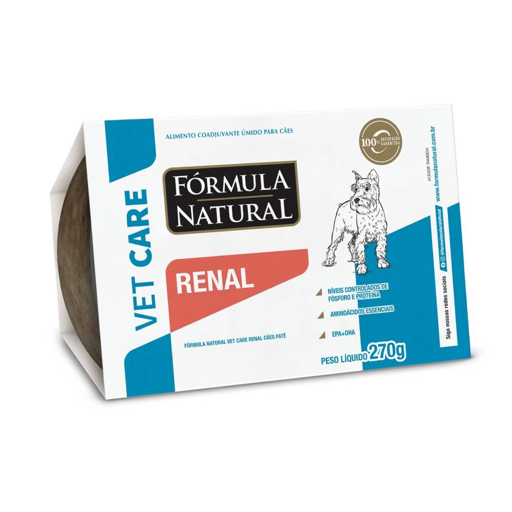 Fórmula Natural Vet Care Renal Cães Patê é um alimento coadjuvante desenvolvido para auxiliar no tratamento de cães diagnosticados com doença renal crônica, já vem pronto para ser servido, podendo ser oferecido conforme a tabela orientativa.