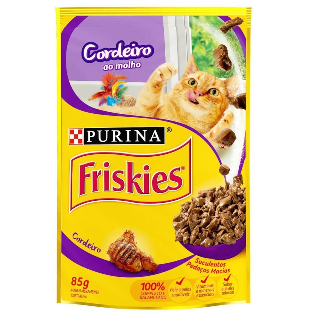 Composição Básica: miúdos de cordeiro, fígado suíno, fígado de frango, carne mecanicamente separada de frango, glúten de trigo, proteína concentrada de soja, amido de milho, dextrose, fosfato bicálcico, carbonato de cálcio, cloreto de sódio (sal comum), cloreto de potássio, água, taurina, glicina, vitaminas (A, D3, E, K3, B12, mononitrato de tiamina, suplemento de riboflavina, cloridrato de piridoxina, niacina, biotina, ácido fólico, pantotenato de cálcio, cloreto de colina), minerais (sulfato de zinco, proteinato de zinco, sulfato ferroso, sulfato de cobre, proteinato de cobre, sulfato de manganês, proteinato de manganês, iodato de cálcio, selenito de sódio), corante (caramelo).