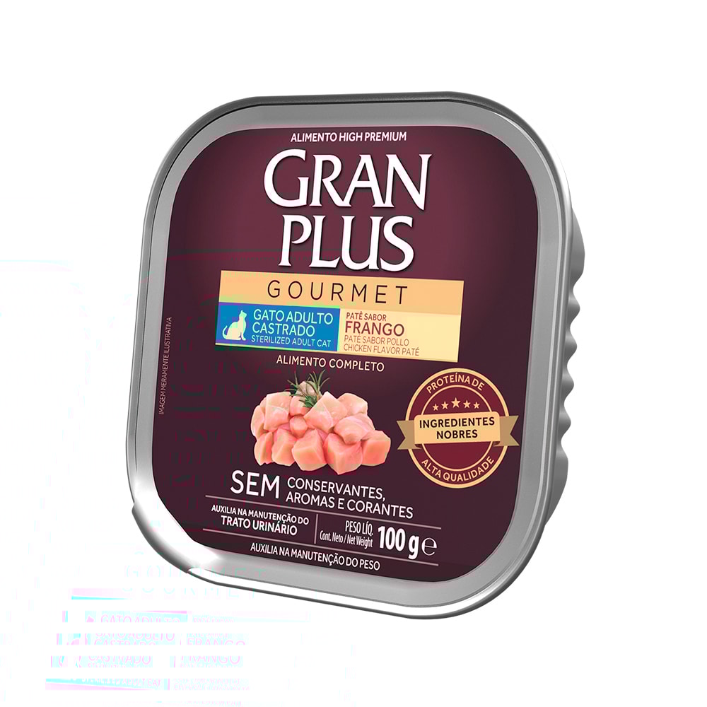 Detalhes do Produto Descubra o delicioso mundo da Ração Úmida Gran Plus Patê Gourmet para Gatos! Com GranPlus, sabor e cuidado estão sempre de mãos dadas, proporcionando uma experiência gastronômica excepcional para o seu adorável felino.