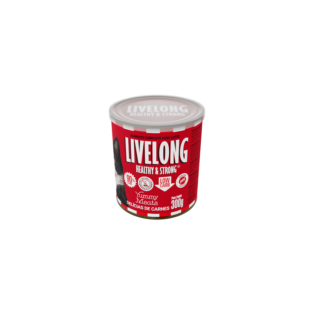 Ofereça ao seu felino o que há de melhor em nutrição e sabor com a Ração Úmida Livelong Delícias de Carne 300g!