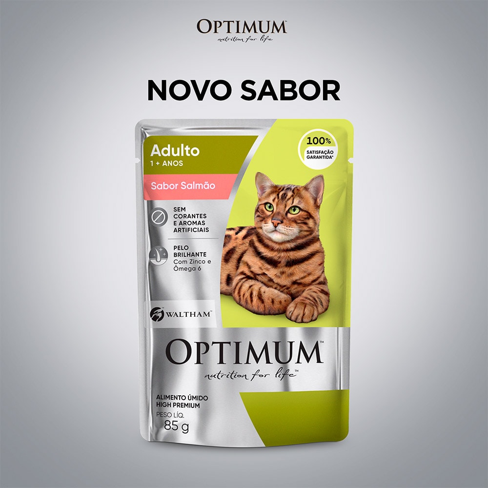 Optimum™ Gatos Adultos Sabor Salmão é a escolha certa para quem busca sabor, qualidade e nutrição em cada refeição do seu felino.