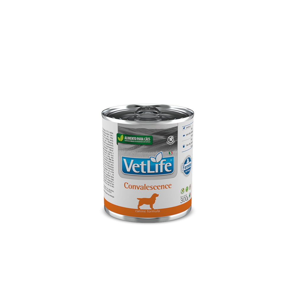 A Ração Úmida Vet Life Canine Convalescence 300g é um alimento coadjuvante úmido indicado para cães convalescentes ou em recuperação nutricional.