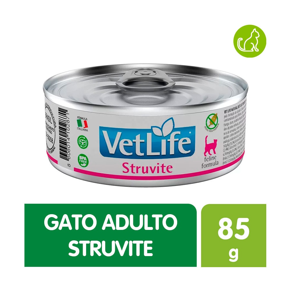 A Ração Úmida Vet Life Feline Struvite 85g é um alimento coadjuvante úmido indicado para gatos com distúrbios urinários provocados pela formação de cálculos à base de estruvita.