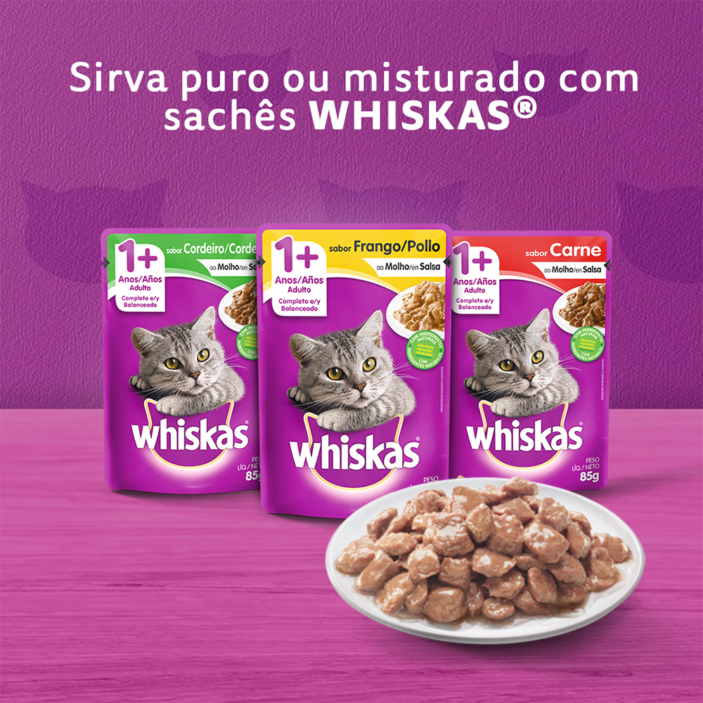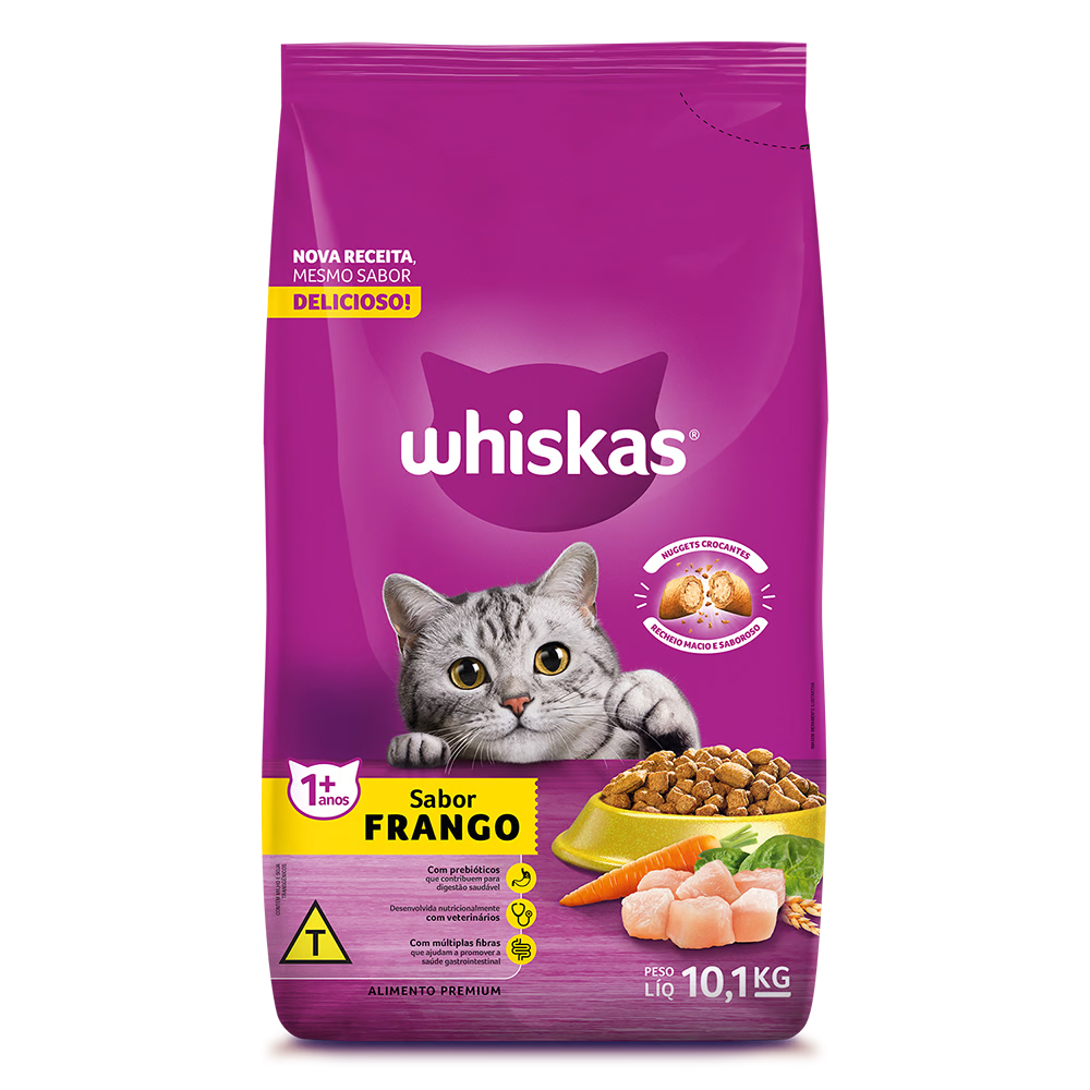 A marca WHISKAS® oferece o que há de mais saboroso com a quantidade exata dos nutrientes necessários para uma alimentação 100% completa e saudável. WHISKAS® Alimentos Secos Adultos é enriquecido com vitaminas, minerais e aminoácidos essenciais e também contém nutrientes antioxidantes que auxiliam na eliminação de radicais livres.