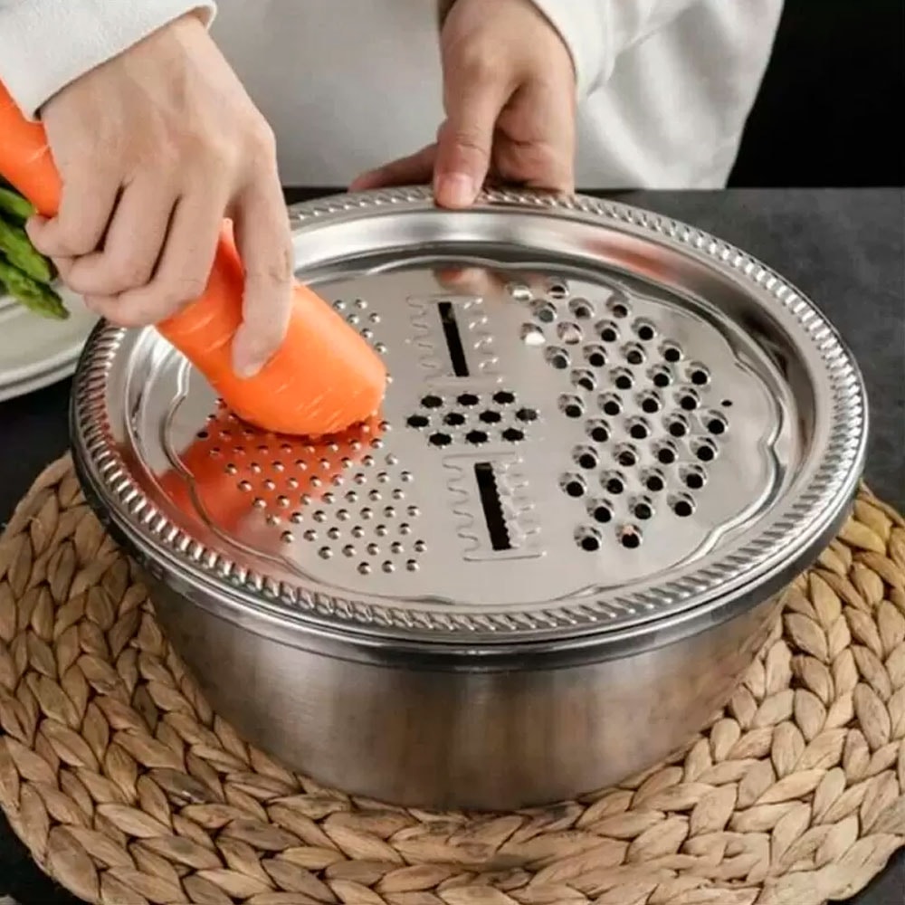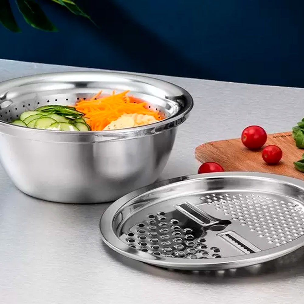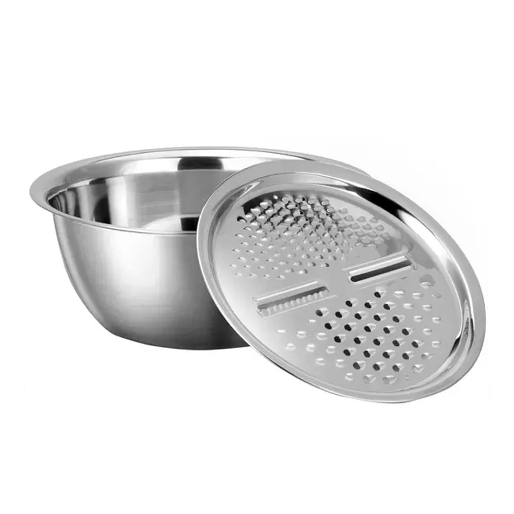 O ralador acomplado na bacia permite maior praticidade e agilidade no preparo dos alimentos, seja uma salada ou uma culinária mais refinada. Você ainda pode utilizá-lo para reservar, armazenar ou servir à mesa, graças a qualidade do material que além da alta qualidade, possui um belo acabamento em brilho espelhado.
