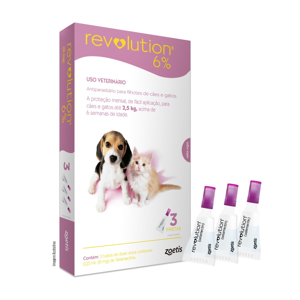 Revolution Antiparasitário Zoetis para Cães e Gatos até 2,5kg 15mg 3 Pipetas