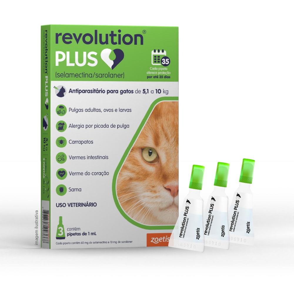 Revolution Plus® – Antiparasitário Tópico para Gatos de 5,1 a 10kg 1ml 3 Pipetas