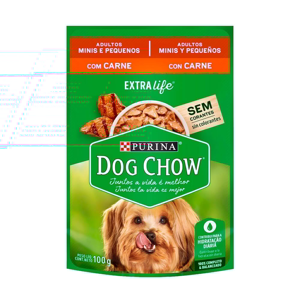 Cães adultos necessitam de aproximadamente 0,5 a 1 sachê de 100g para cada 1 kg de peso corporal por dia. Quando oferecido com alimento seco, cada sachê de Dog Chow corresponde a 25 g (1,4 de xícara de 200 ml) de Dog Chow seco. Ajuste a quantidade para manter a condição corporal ideal de seu cão.