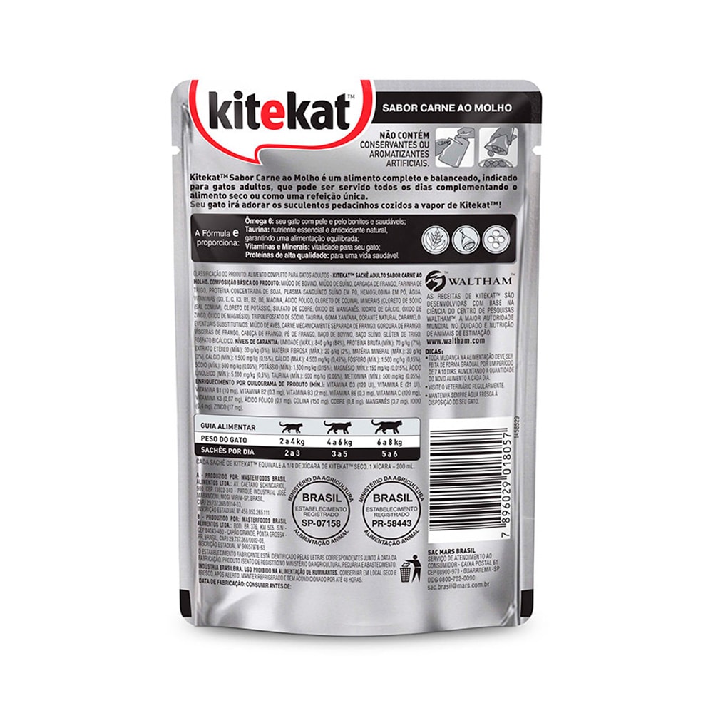 Cada sachê de KITEKAT™ equivale a 1/4 de xícara de KITEKAT™ seco. 1 xícara = 200 ml.