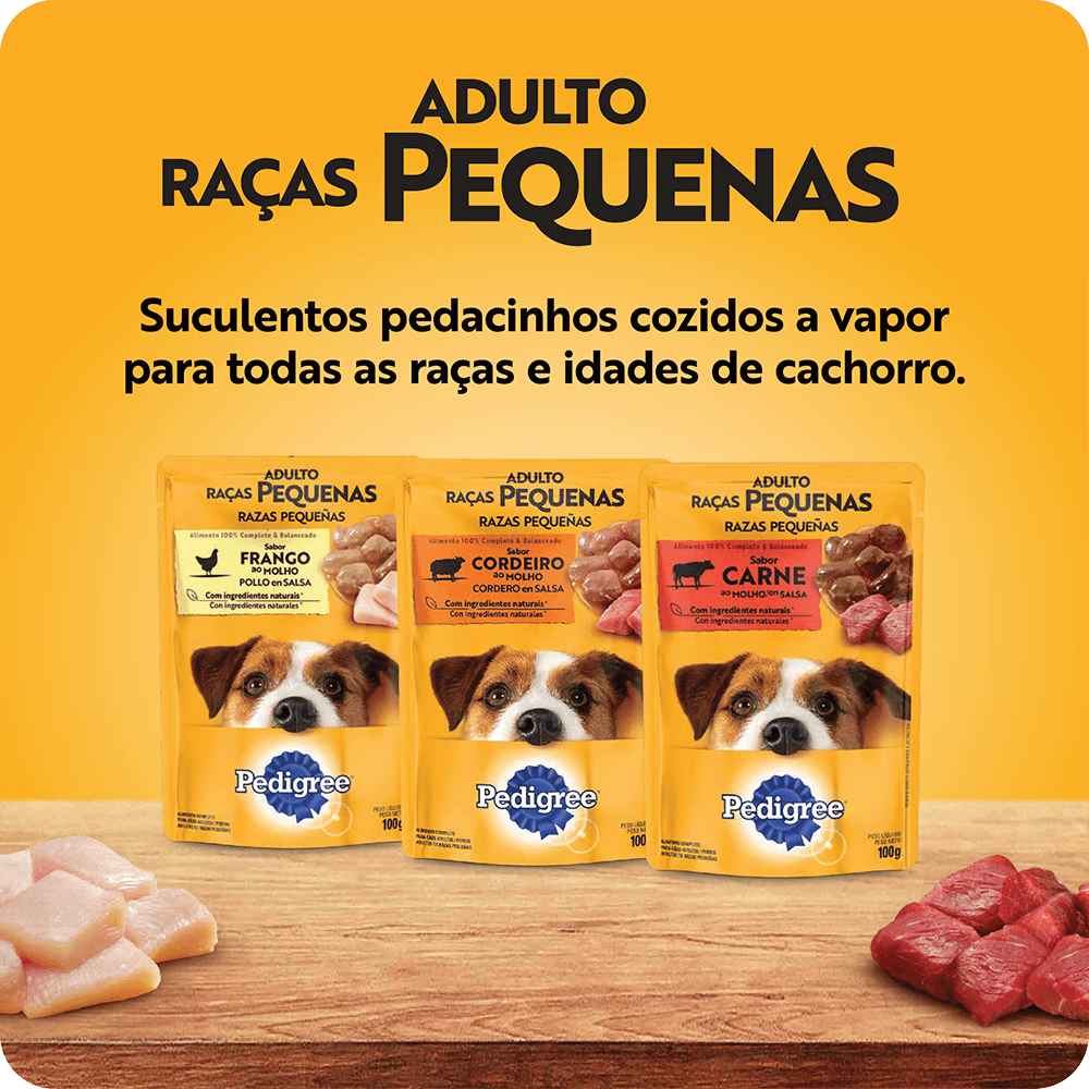 O novo PEDIGREE® sachê Vital Pro™ dá ao seu cão nutrição profissional para mantê-lo saudável em toda sua vida. É uma refeição completa e balanceada para ser servida todos os dias. Feito com deliciosos pedaços sabor frango que os cães adoram.