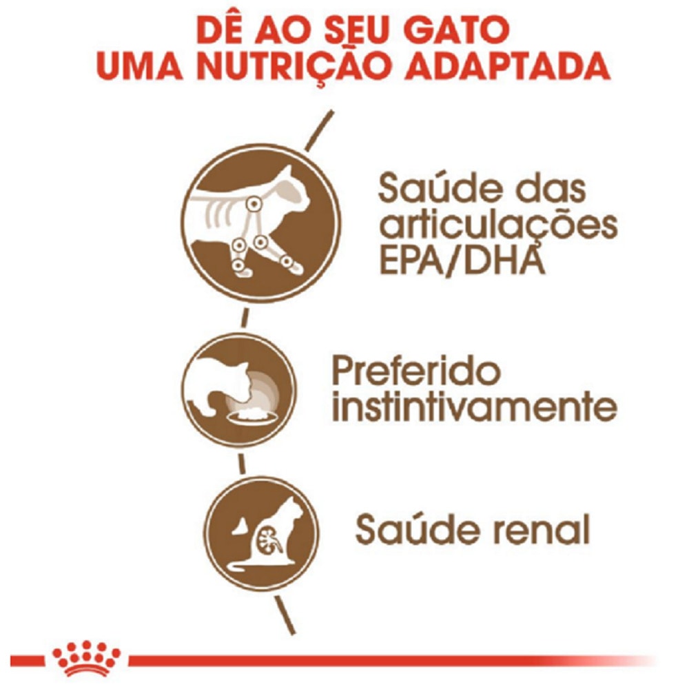 O Sachê Royal Canin Ageing 12+ para Gatos Idosos é um alimento úmido que contém 80% de umidade, e é especialmente formulado para se adaptar aos gatos seniores. Sua fórmula apresenta pedaços ao molho.