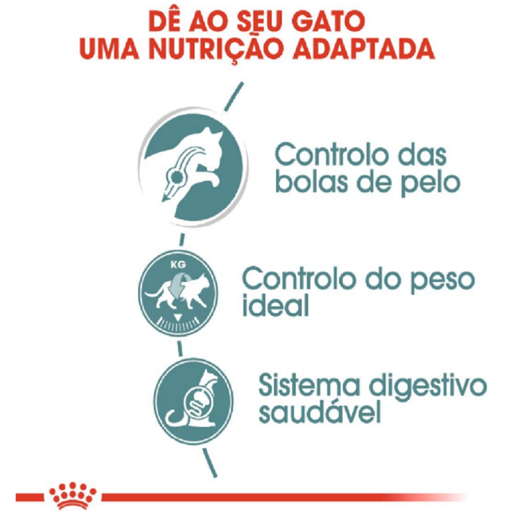 O Sachê para Gatos Adultos Royal Canin Cat Hairball Care é um alimento úmido completo que ajuda na prevenção da formação de bolas de pelos. Possui um alto nível de proteínas e nutrientes, diminui a formação de bolas de pelos e sua fórmula contém fibras e nutrientes, que favorecem a digestão.