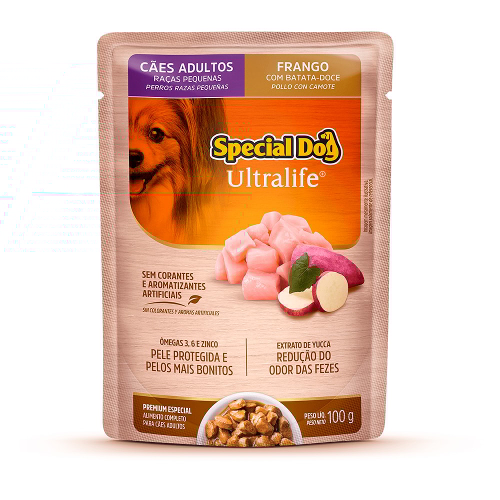 O Special Dog Sachê Adulto Para Cães de Raças Pequenas é uma excelente combinação de saborosos pedaços macio, cozidos a vapor, com um suculento molho especial. O seu cãozinho vai adorar! Alimento úmido, completo e balanceado para cães adultos de raças pequenas.