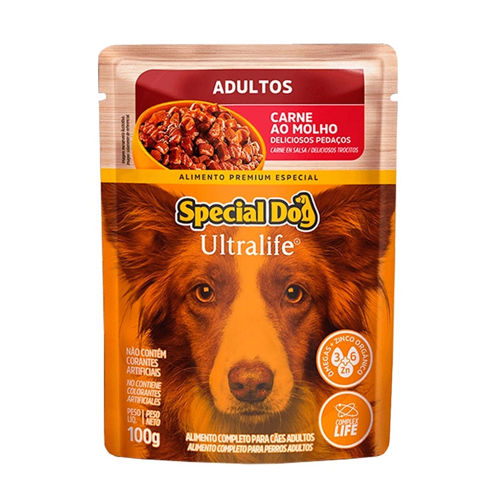 Alimento úmido, completo e balanceado para cães adultos. Special Dog Sachê Cães Adultos Carne ao Molho é uma excelente combinação de saborosos pedaços macio, cozidos a vapor, com um suculento molho especial. O seu cãozinho vai adorar!