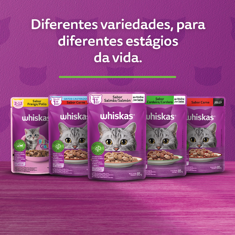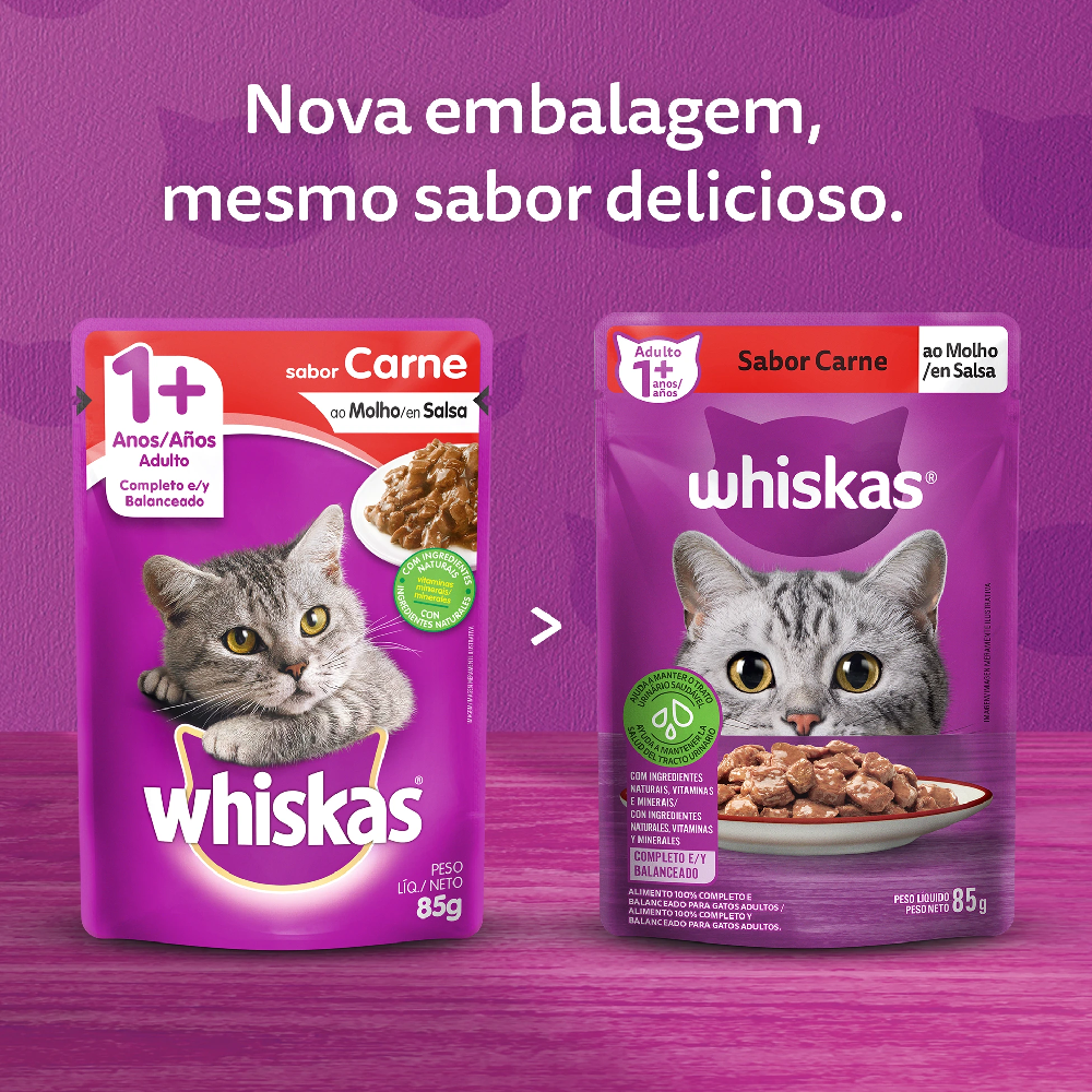 WHISKAS® Sachê Adulto Sabor Carne ao Molho sabe o que os gatos naturalmente precisam e amam. Por isso, cada sachê é preparado cuidadosamente com ingredientes de alta qualidade, garantindo os nutrientes que eles precisam todos os dias, e agora com um molho ainda mais encorpado.