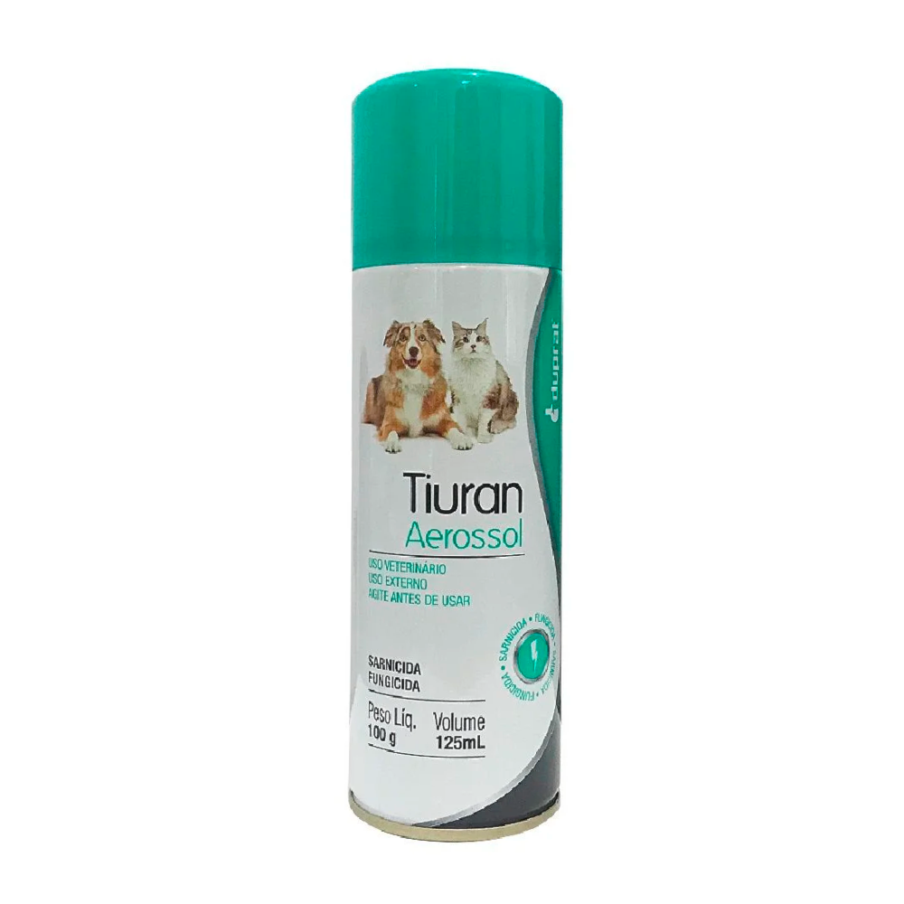 O Tiuran Aerossol é indicado para o tratamento das sarnas que acometem os animais domésticos, nas mais diversas regiões do corpo. Este produto auxilia na eliminação de sarnas (escabiose) e micoses (dermatofitose) sobre a pele dos animais, propiciando o crescimento de pelos que a doença eliminou.