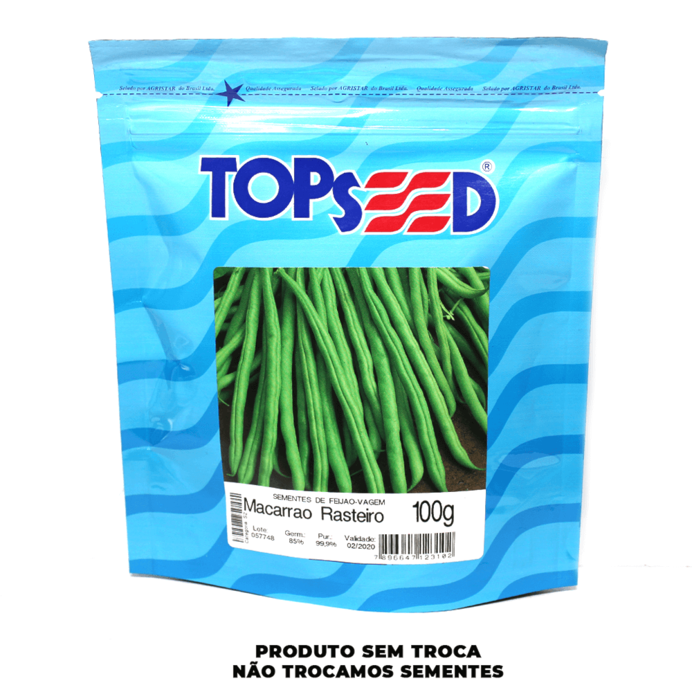 Planta rasteira. Vagem medindo cerca de 15 cm, tenra e sem fibras.
