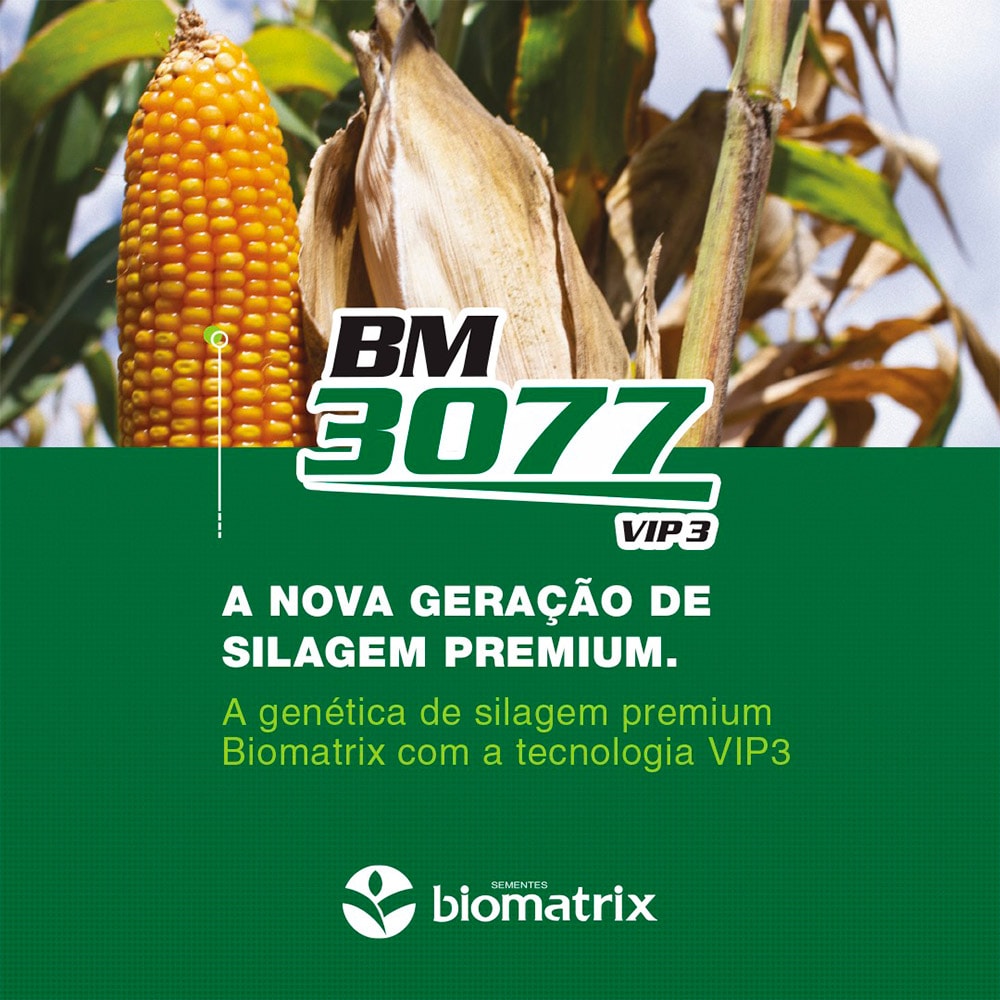 Semente de Milho Híbrido Biomatrix BM 3077 Viptera 3 Fortenza + Cruizer - 60 mil Sementes