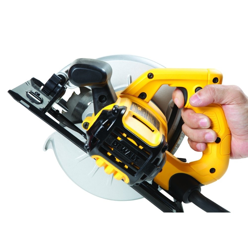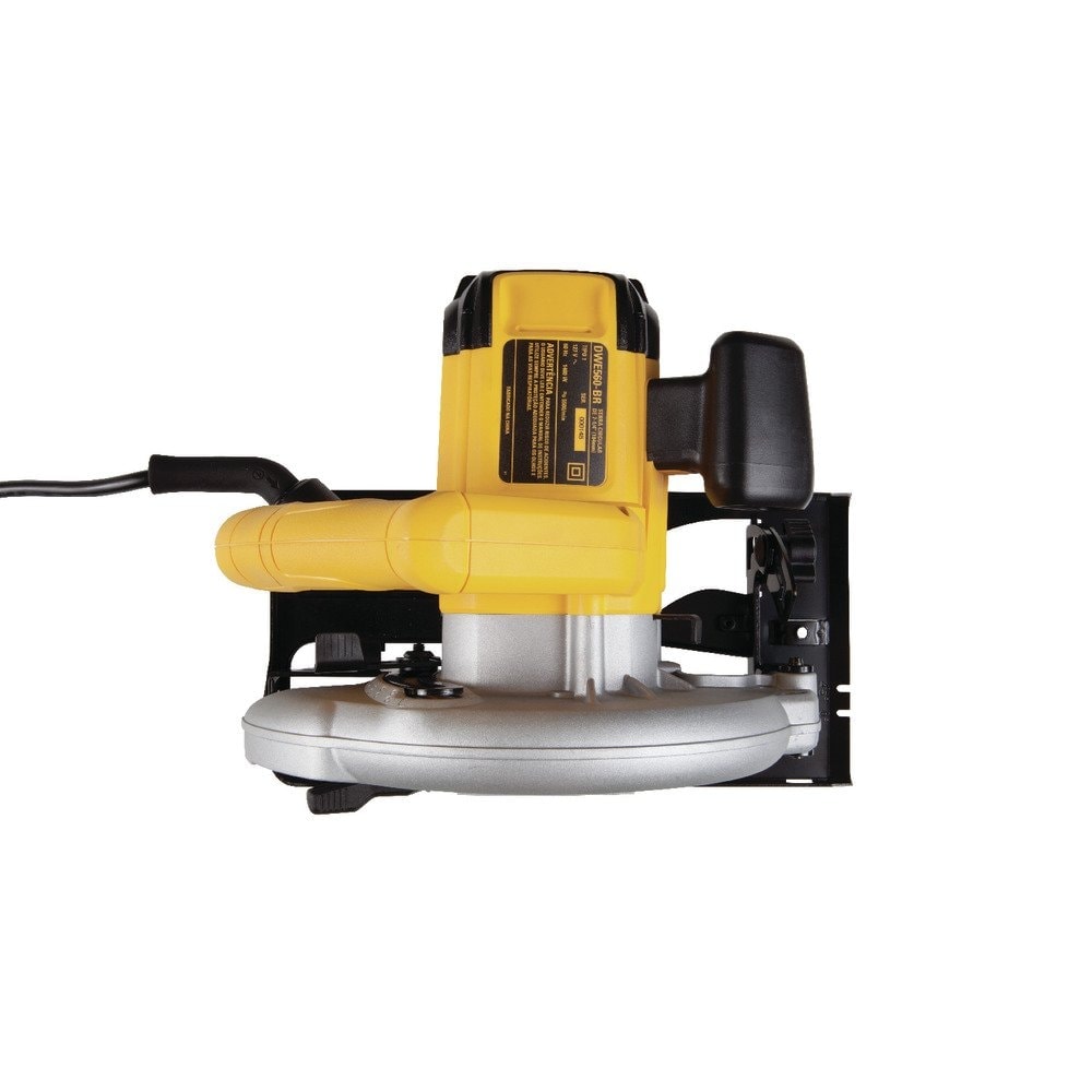 A Serra Circular 7-1/4" (184 mm) 1400W 5.500 RPM Ref. DWE560BR - DeWalt é leve, tem ótimo desempenho, ajuste de 2 ângulos diferentes através da alavanca de ajuste rápido de profundidade, soprador para expulsão de pó, sapata para proporciona um balanço ótimo, ranhuras tipo U para maior visibilidade nos cortes, capacidade de profundidade de corte de 65mm, corte reto à 45 graus de inclinação, guarda inferior com sistema retrátil de alta durabilidade.