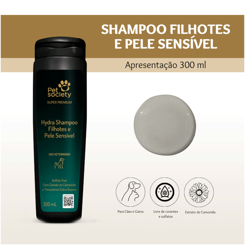 Dê ao seu filhote de quatro patas o cuidado e o carinho que ele merece com o Shampoo para Cães Filhotes Pele Sensível Premium 300ml Pet Society!