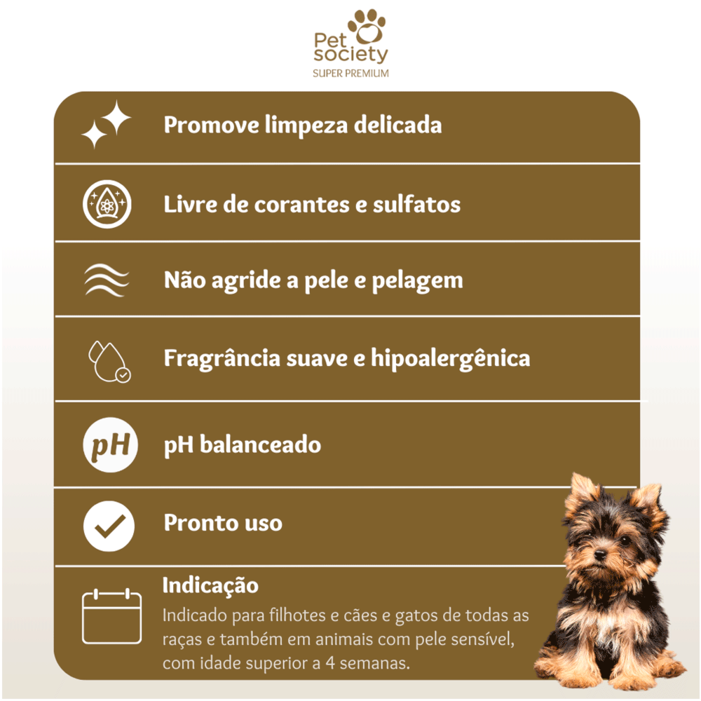 Com o Shampoo para Cães Filhotes Pele Sensível Premium 300ml Pet Society, você garante: