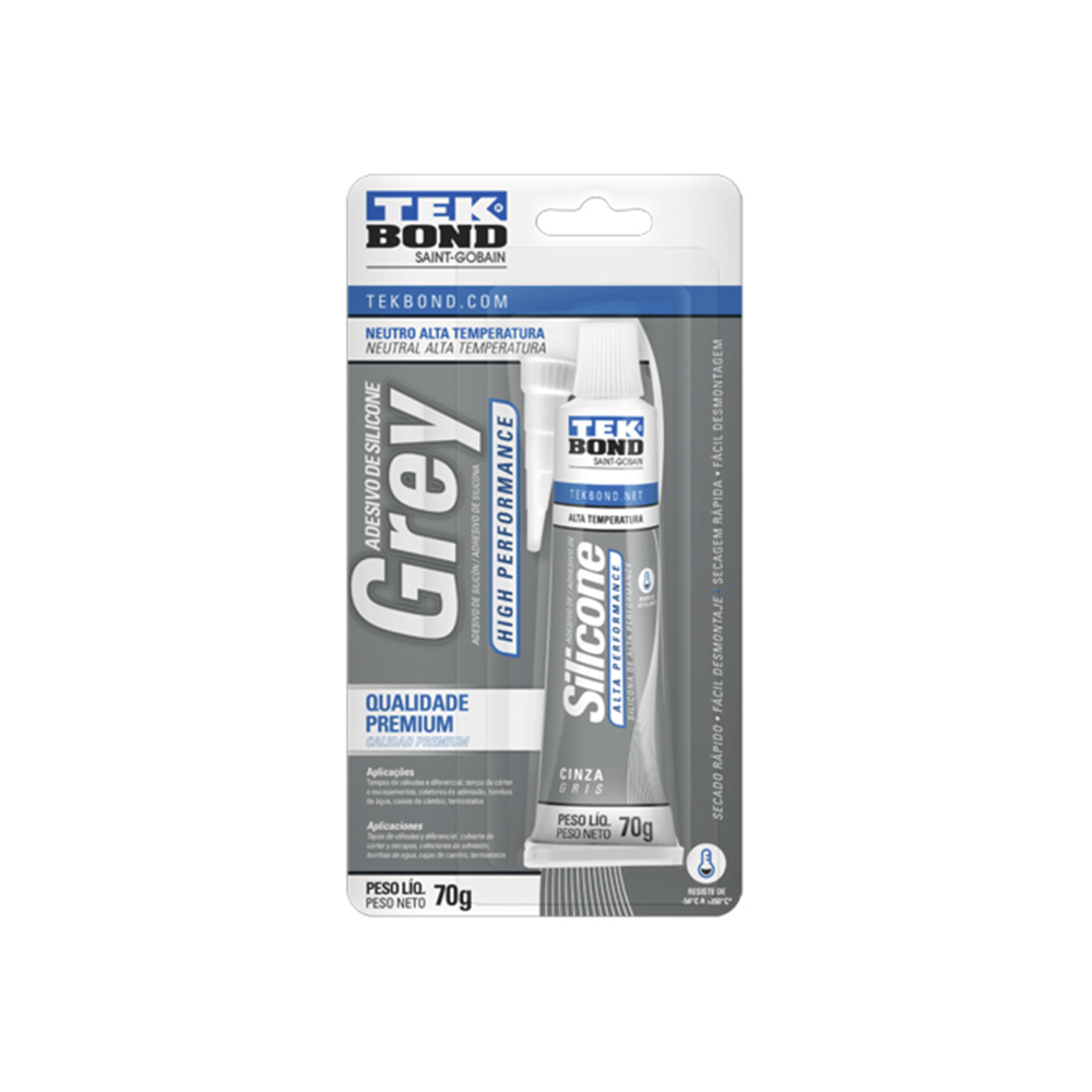 O Silicone Cinza da TekBond é um adesivo selante tixotrópico monocomponente de cura neutra, não corrosivo, de baixo odor e baixa volatilidade, indicado para vedações em superfícies submetidas a altas temperaturas, tais como: juntas de motores, vedação de flanges rígidos, em transmissões e carcaças de ferro fundido. Possui boa resistência a óleo, gases e solventes e excelente resistência em contato permanente com água/glicol e fluídos refrigerantes. Faixa de temperatura (-54ºC a 232ºC contínua / 260ºC intermitente).