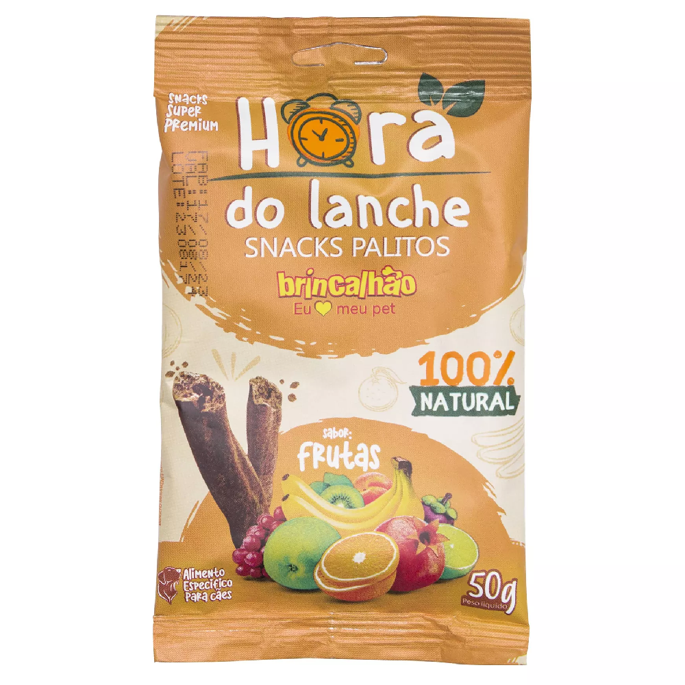 Disponível em embalagem de 50g, o Snack Palitos Hora do Lanche Brincalhão Pet é a escolha ideal para quem busca um petisco saboroso, saudável e que proporciona momentos de alegria e cumplicidade com seu cãozinho.