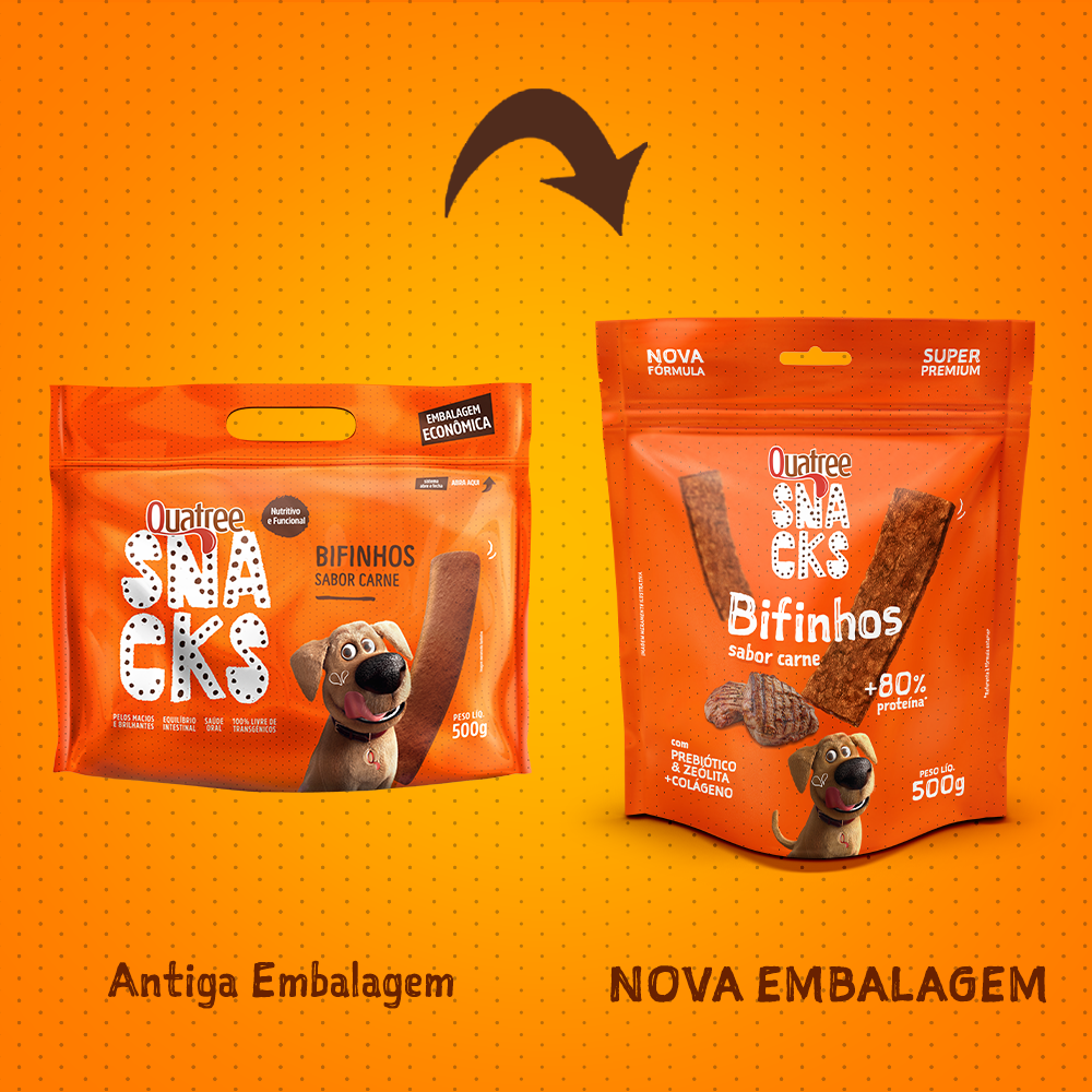 Com 500g de sabor e nutrição, os Bifinhos Quatree Snacks Sabor Carne são a escolha ideal para presentear seu cãozinho com um petisco delicioso e saudável que ele vai adorar!