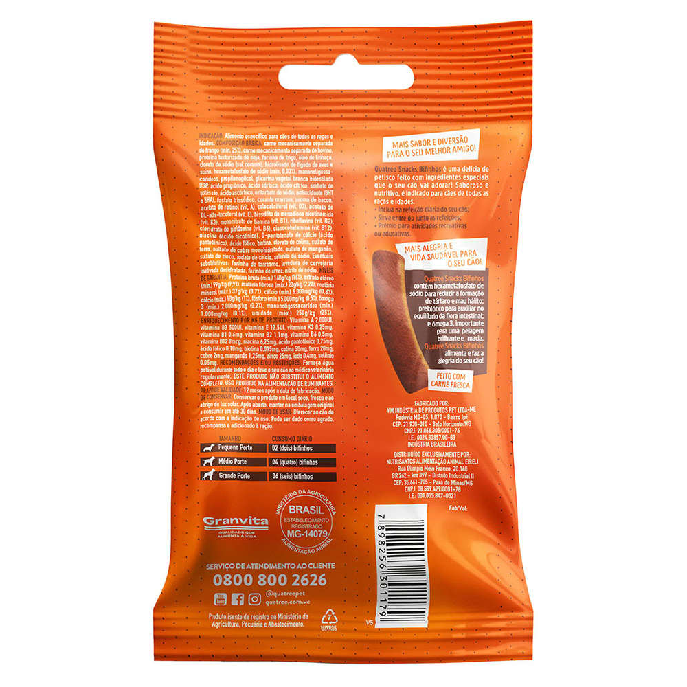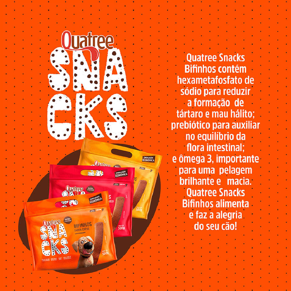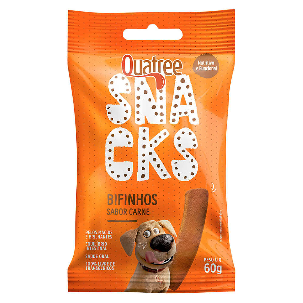 Com 60g de sabor e nutrição, os Bifinhos Quatree Snacks Sabor Carne são a escolha ideal para presentear seu cãozinho com um petisco delicioso e saudável que ele vai adorar!