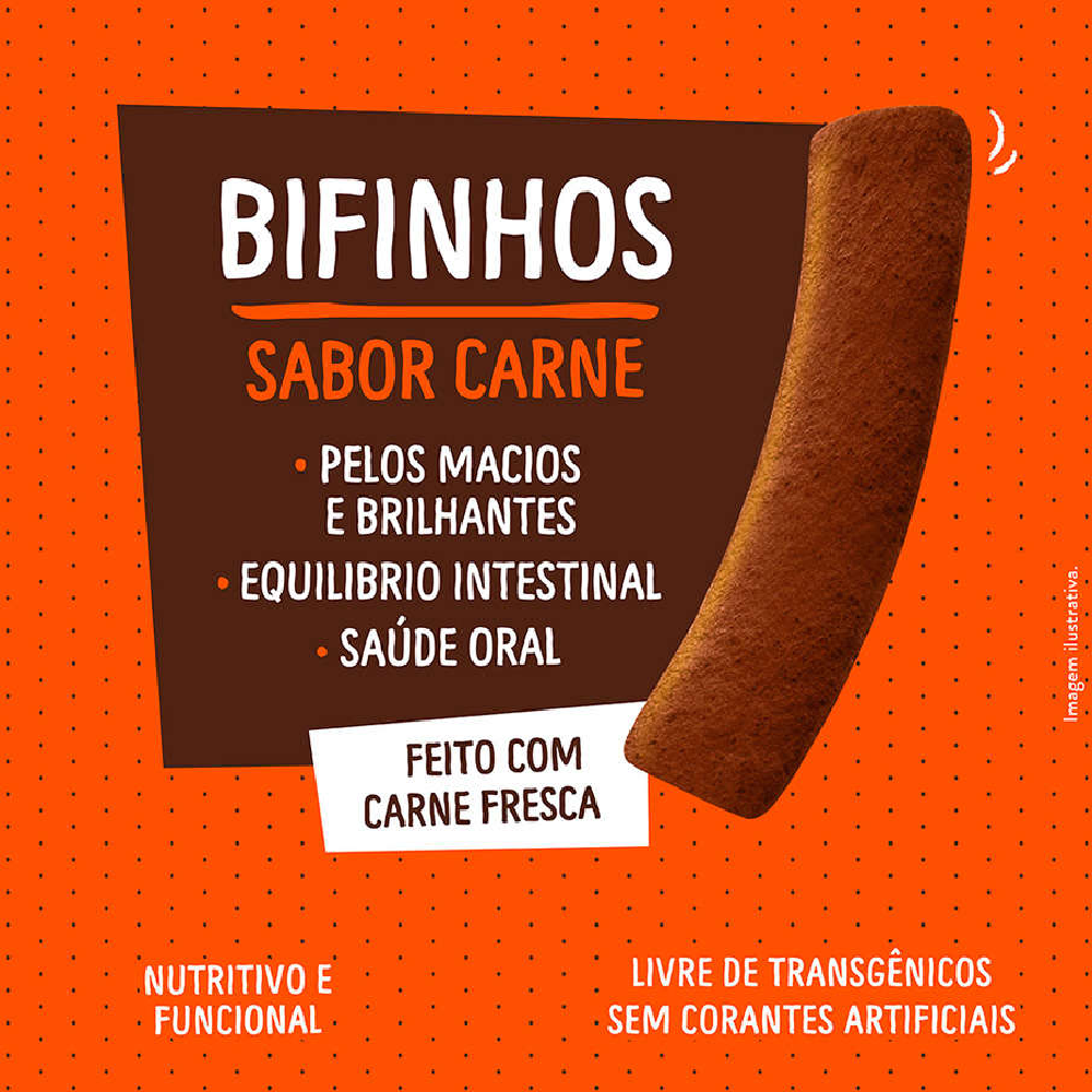 Dica: Para um momento ainda mais especial, aqueça os Bifinhos Quatree Snacks Sabor Carne levemente antes de oferecer ao seu cãozinho. O aroma irresistível de carne vai deixá-lo ainda mais ansioso para saborear essa delícia!