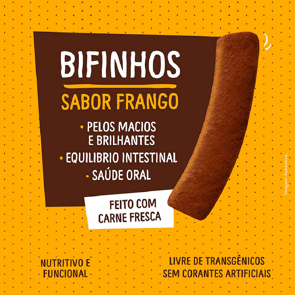 Dica: Para um momento ainda mais especial, aqueça os Bifinhos Quatree Snacks Sabor Frango levemente antes de oferecer ao seu cãozinho. O aroma irresistível de frango vai deixá-lo ainda mais ansioso para saborear essa delícia!