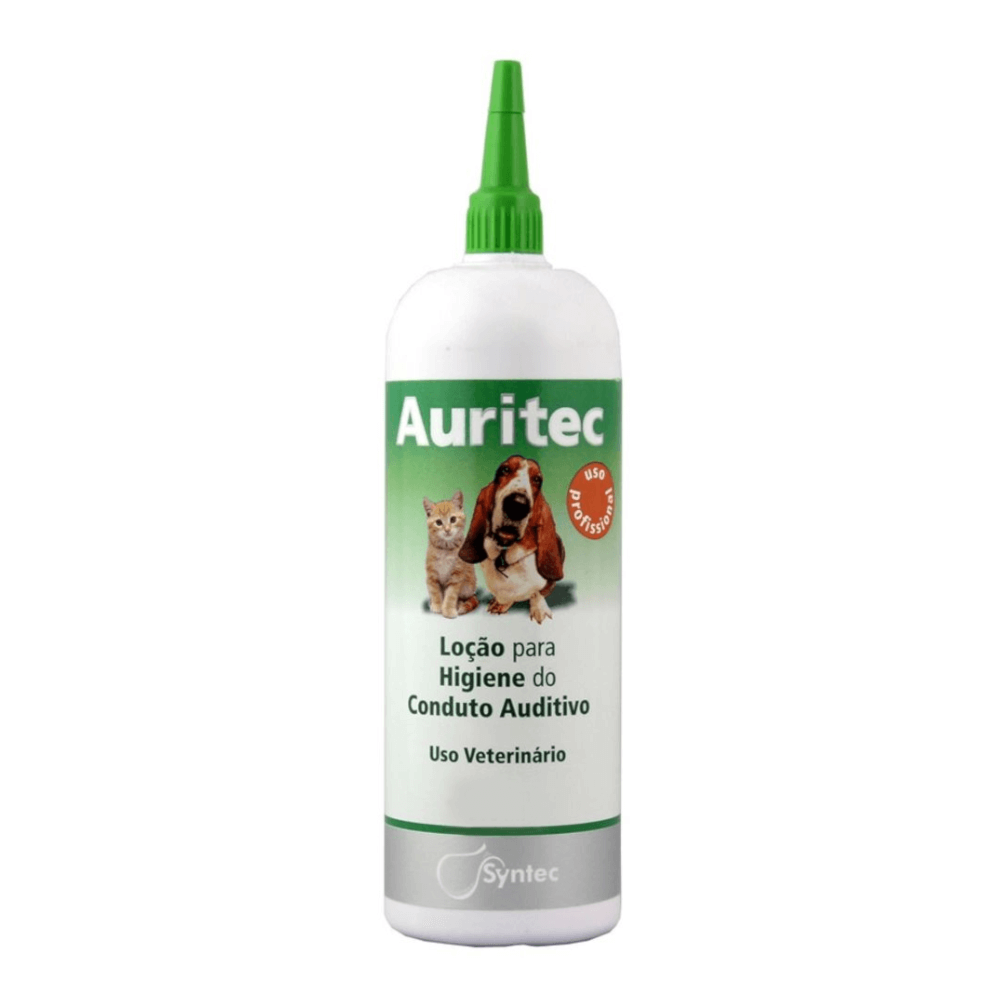 Auritec é uma solução otológica indicada para a higienização e dissolução do excesso de cerúmen do pavilhão auricular e do conduto auditivo externo dos cães e dos gatos.